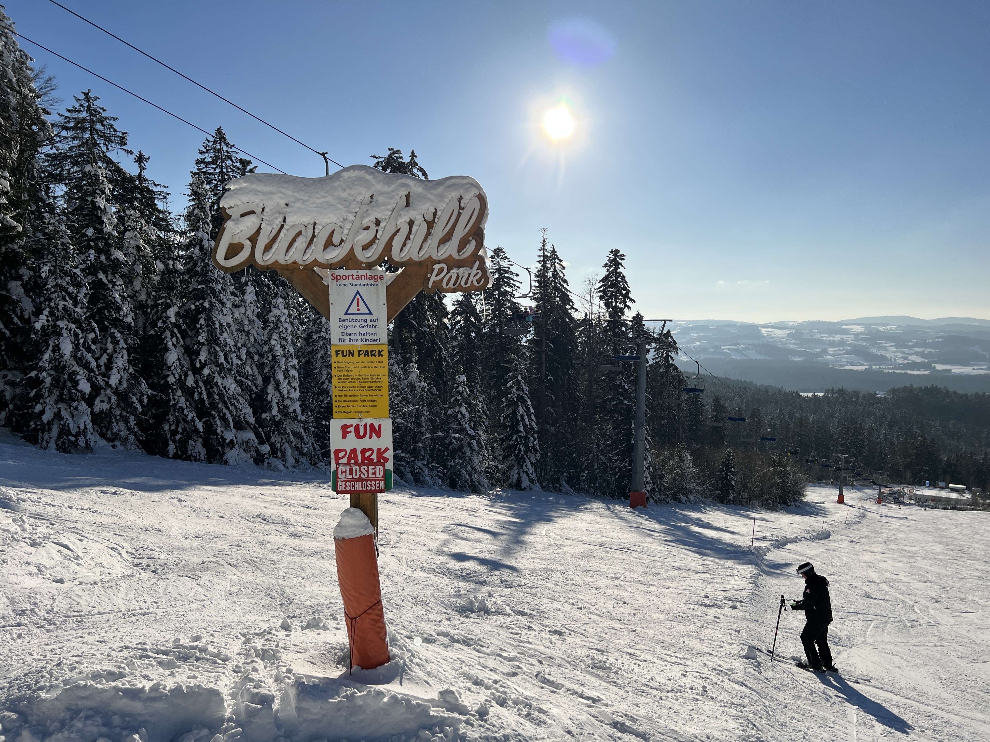 Proper freestyle elements such as boxes, rails and other obstacles are offered by the Blackhill Funpark on the Schwarzenberg run.