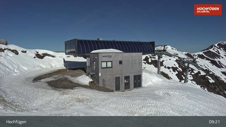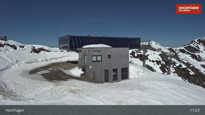 This webcam is located at the top station of Waidoffen chairlift in the ski resort Hochfügen-Hochzillertal.