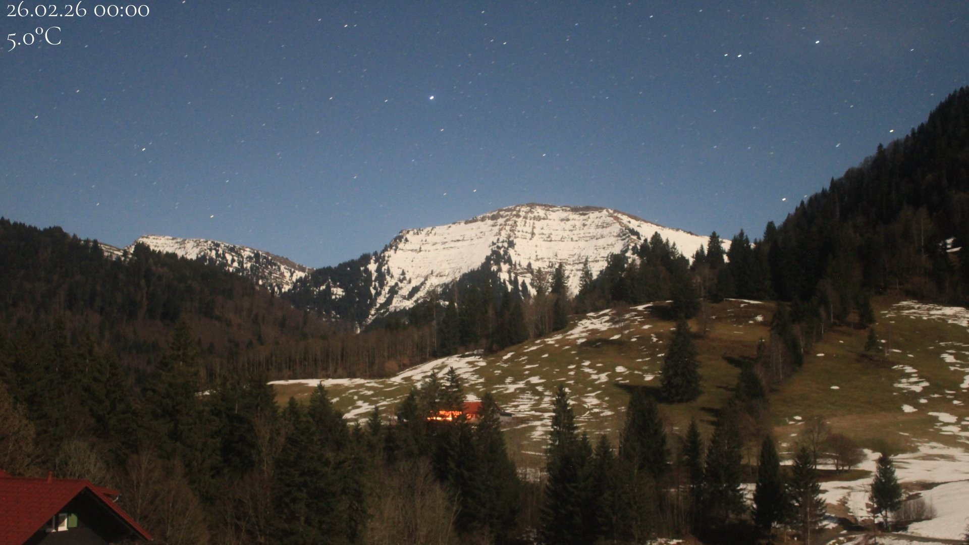 Archived webcam image showing Oberstaufen - Hotel Schratt view Hochgrat mountain on 26 Feb 2026 at 00:56 23:00