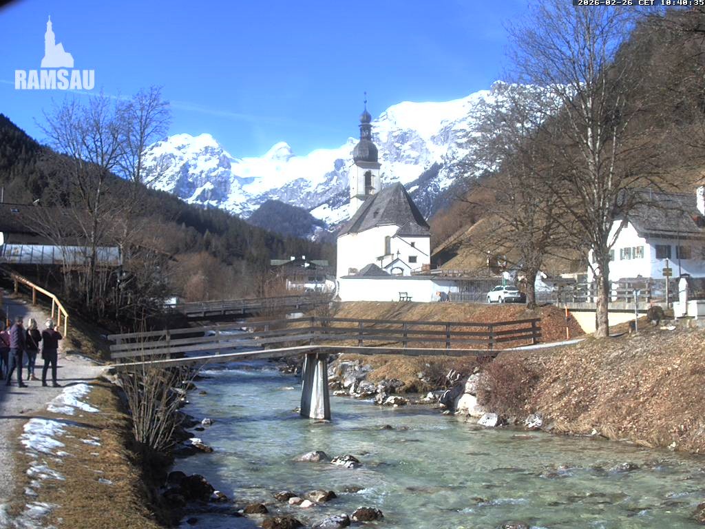 Archiviertes Webcam Bild: Ramsau bei Berchtesgaden - Ortskirche St. Sebastian am 26 Feb 2026 um 12:56 Uhr 11:00