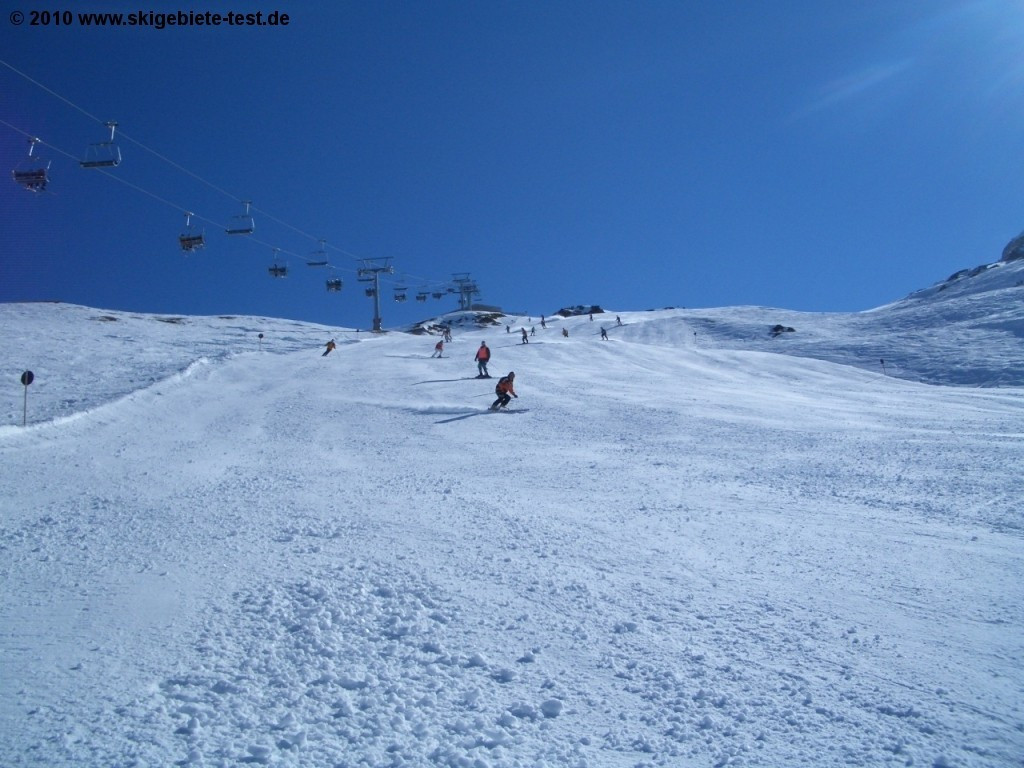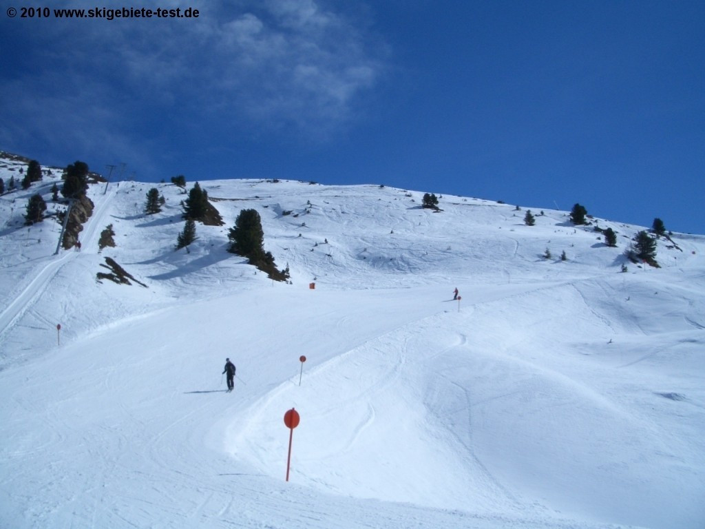 Although the ski resort around the “Hochzeiger” with its 45 kilometers of slope can be counted among the smaller ones in the Austrian Alps expert riders will still find a nice selection of runs there. With the “Rotmoos”, the “Kanonenrohr” and the “Benni-Raich” run the resort offers 8 kilometers in the category black. The runs are not that demanding but nice and wide as well as always nicely groomed, even should there be less snow. Some of the category red runs will also be enjoyable to pro riders. The “Zollberg” run Nr. 6 or the extremely wide FIS run Nr. 2 for example are really nice to do some carving. For riders with high technical skills the bump run alongside the “Rotmoos” ski lift is a really nice option.