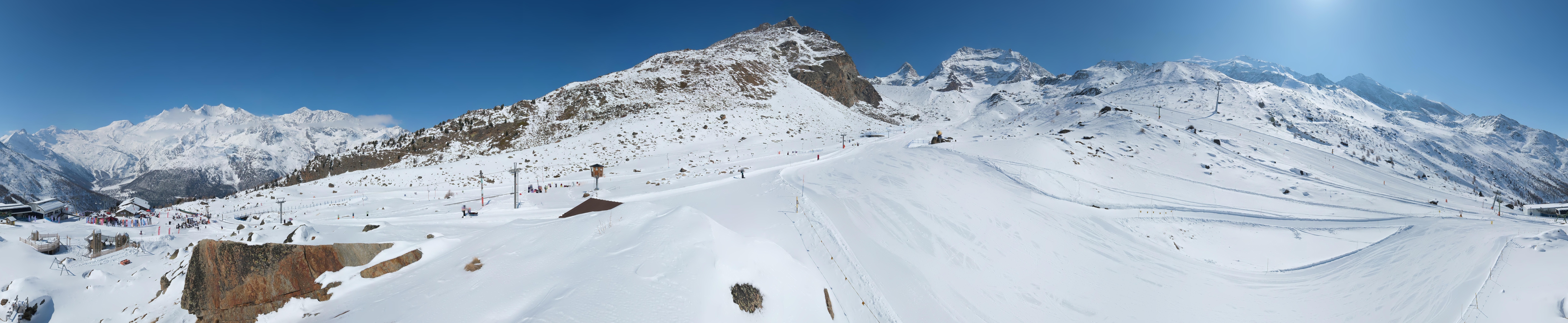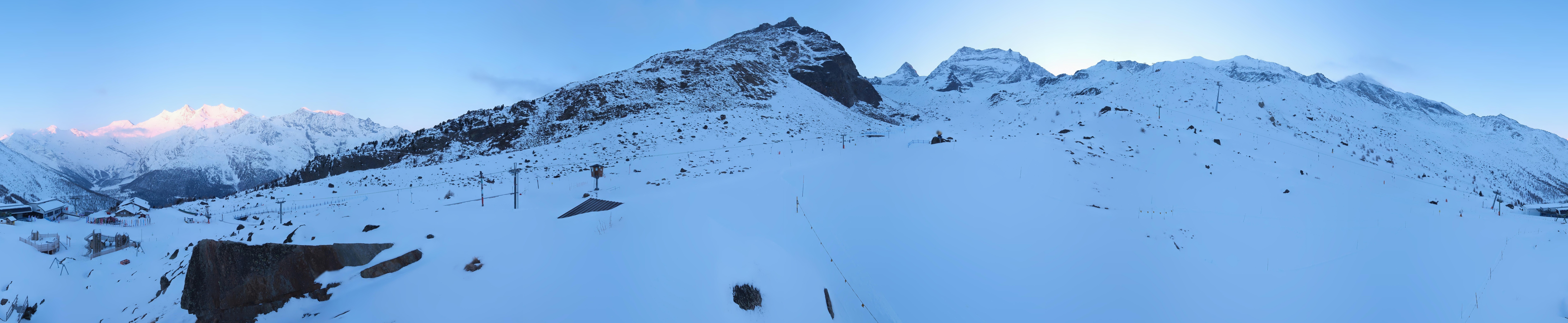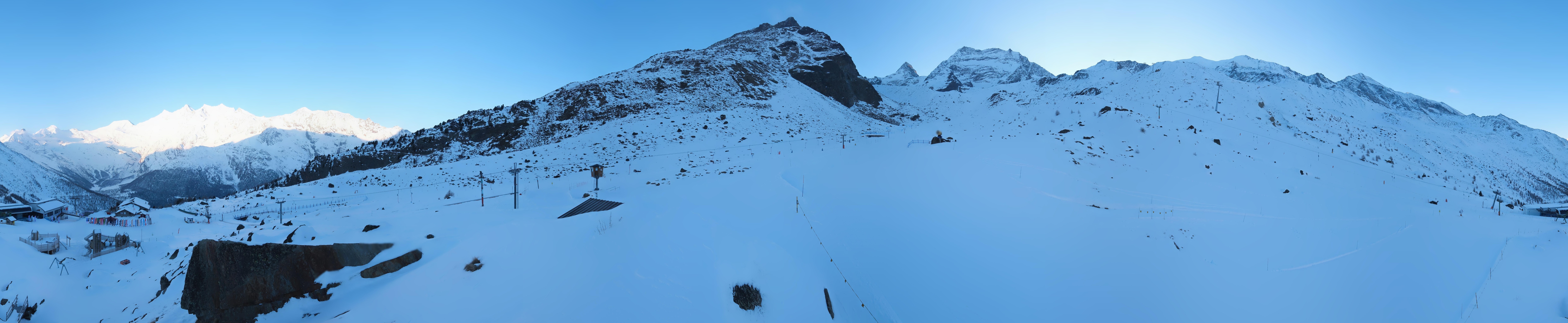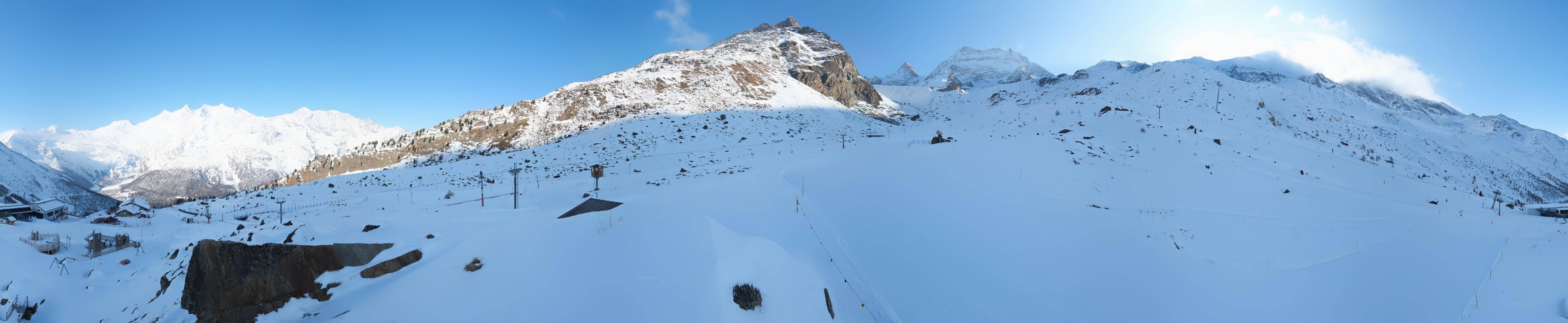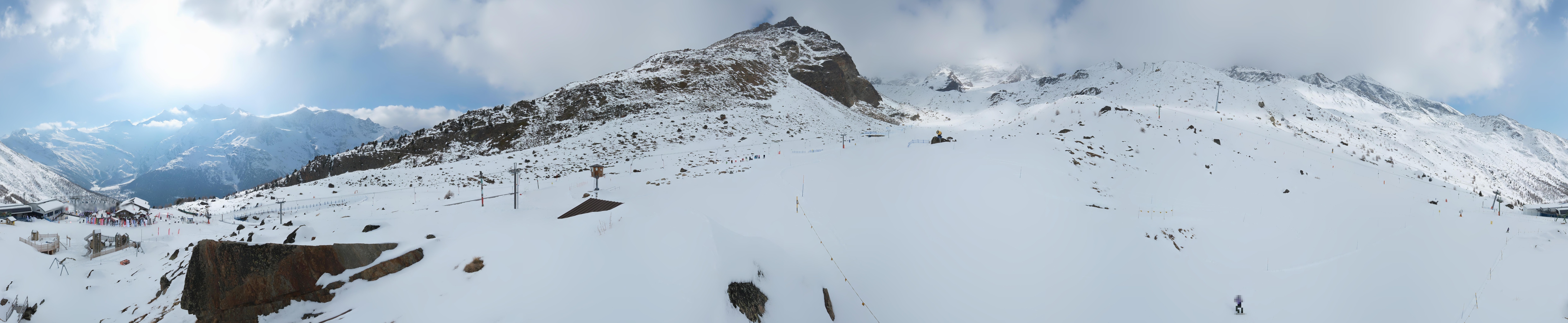 Located near the mid-station of Kreuzboden Gondola at Saas-Grund Hohsaas in Switzerland, this roundshot cam provides a fantastic 360-degree view of the ski resort.