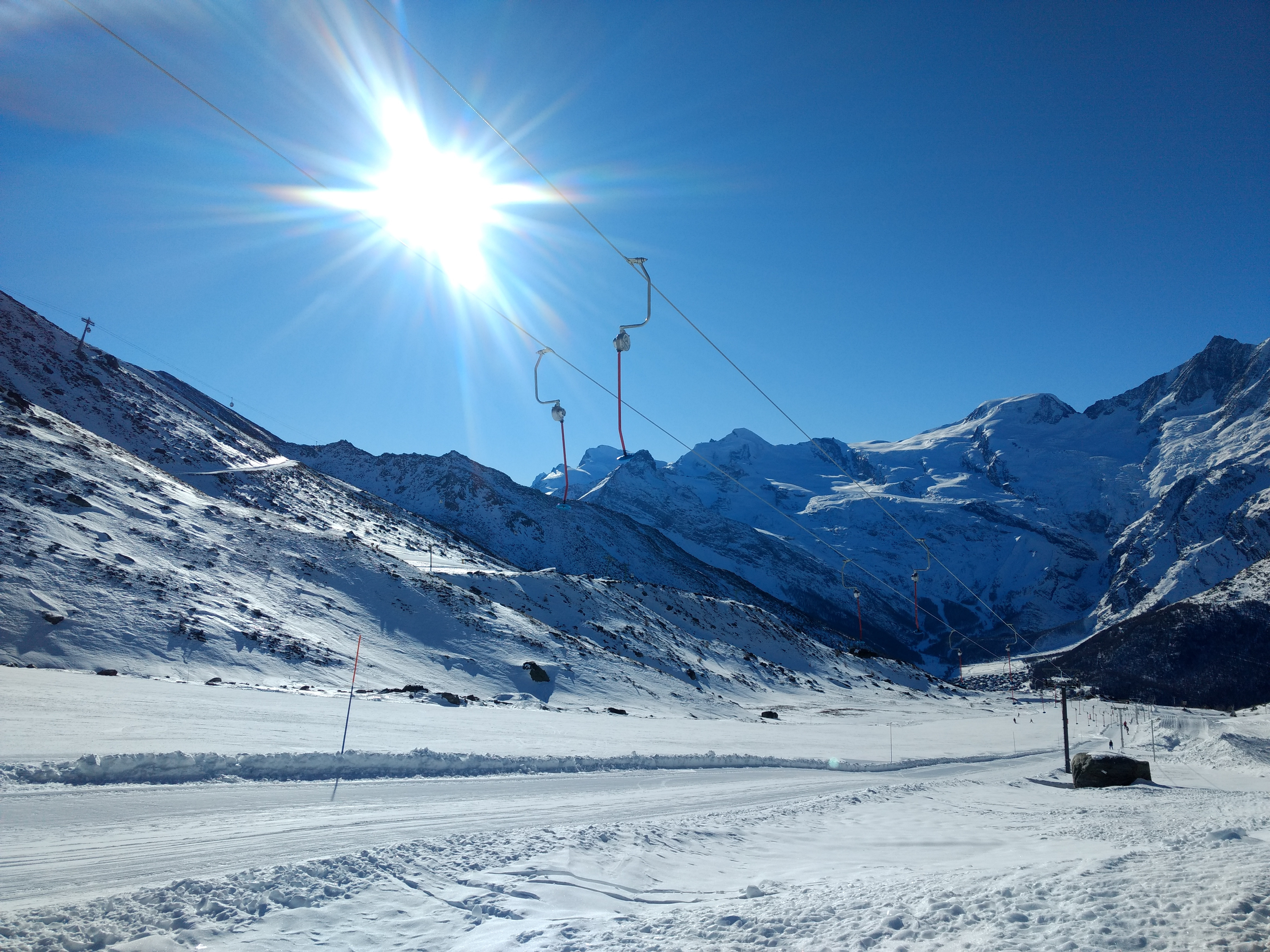 For beginners, the area at Kreuzboden offers beautiful blue slopes to practice on. With a location at around 2400 meters, beginners will therefore also find snow-sure slopes. However, the blue slopes are only served by drag lifts. In addition, there is a magic carpet for the Snowland practice slope. The local Saas-Grund snow sports school offers skiing and snowboarding courses here for both children and adults.