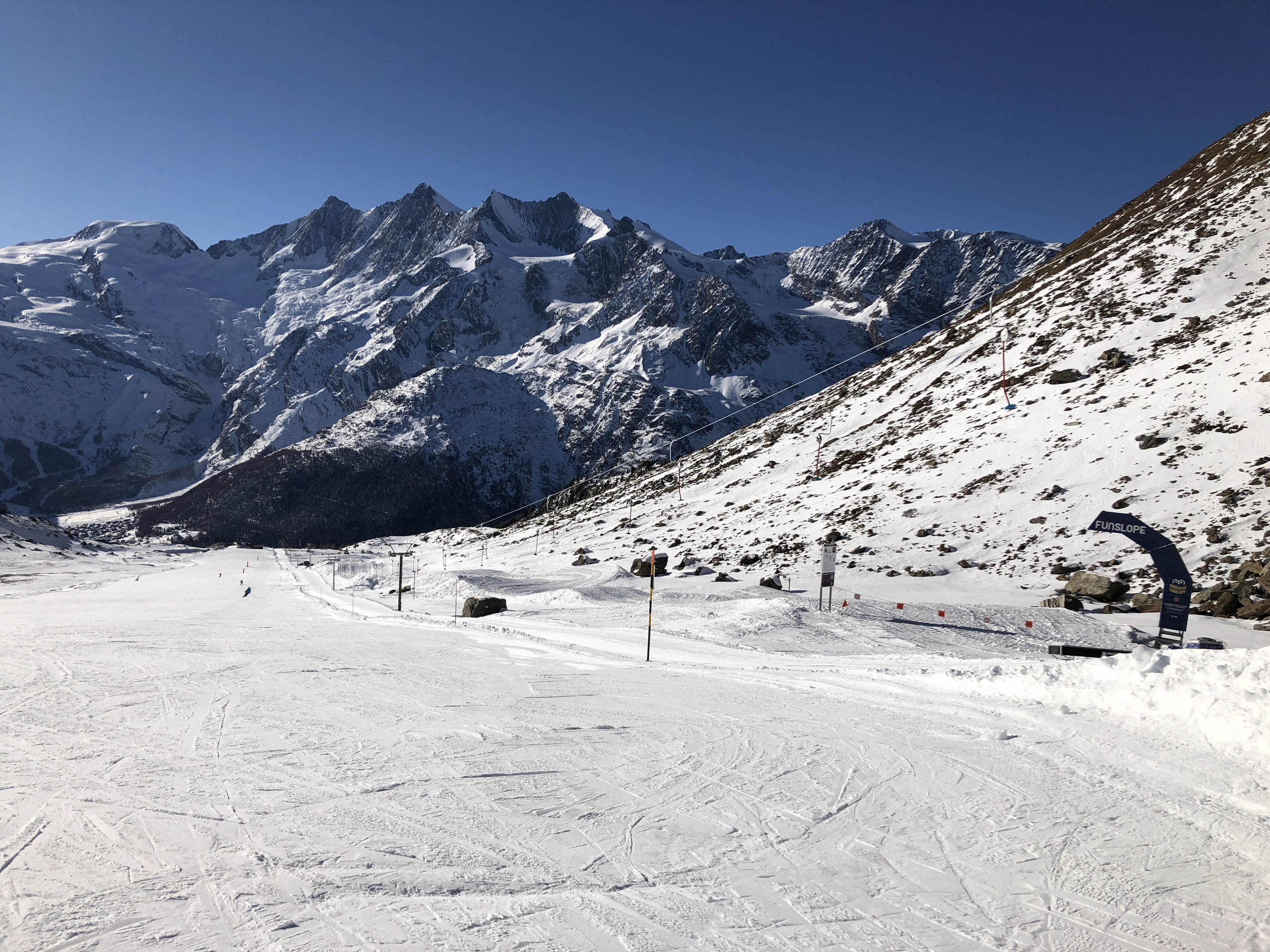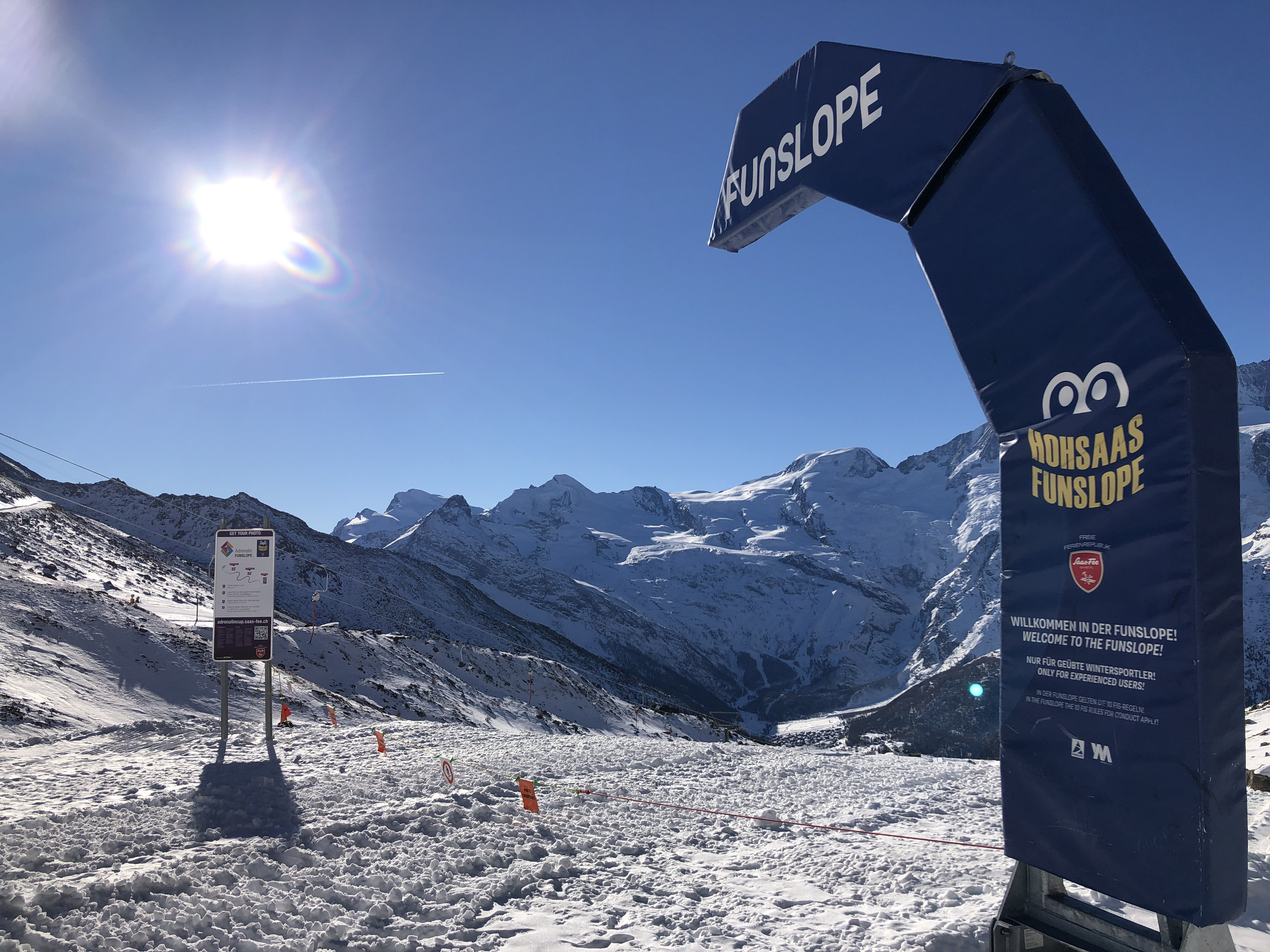 There is no large snow park in Saas-Grund. For that, freestyle professionals should rather go to neighboring Saas-Fee. Instead, Saas-Grund offers a fun slope. It is located right next to the blue Sandiger Boden slope and can be easily reached via the plate lift of the same name, which runs parallel to it. The varied elements are already suitable for less experienced skiers and children, but are also fun for the grown-ups. The fun slope includes waves and steep turns, a tunnel as well as a speed measurement and two photo stations.