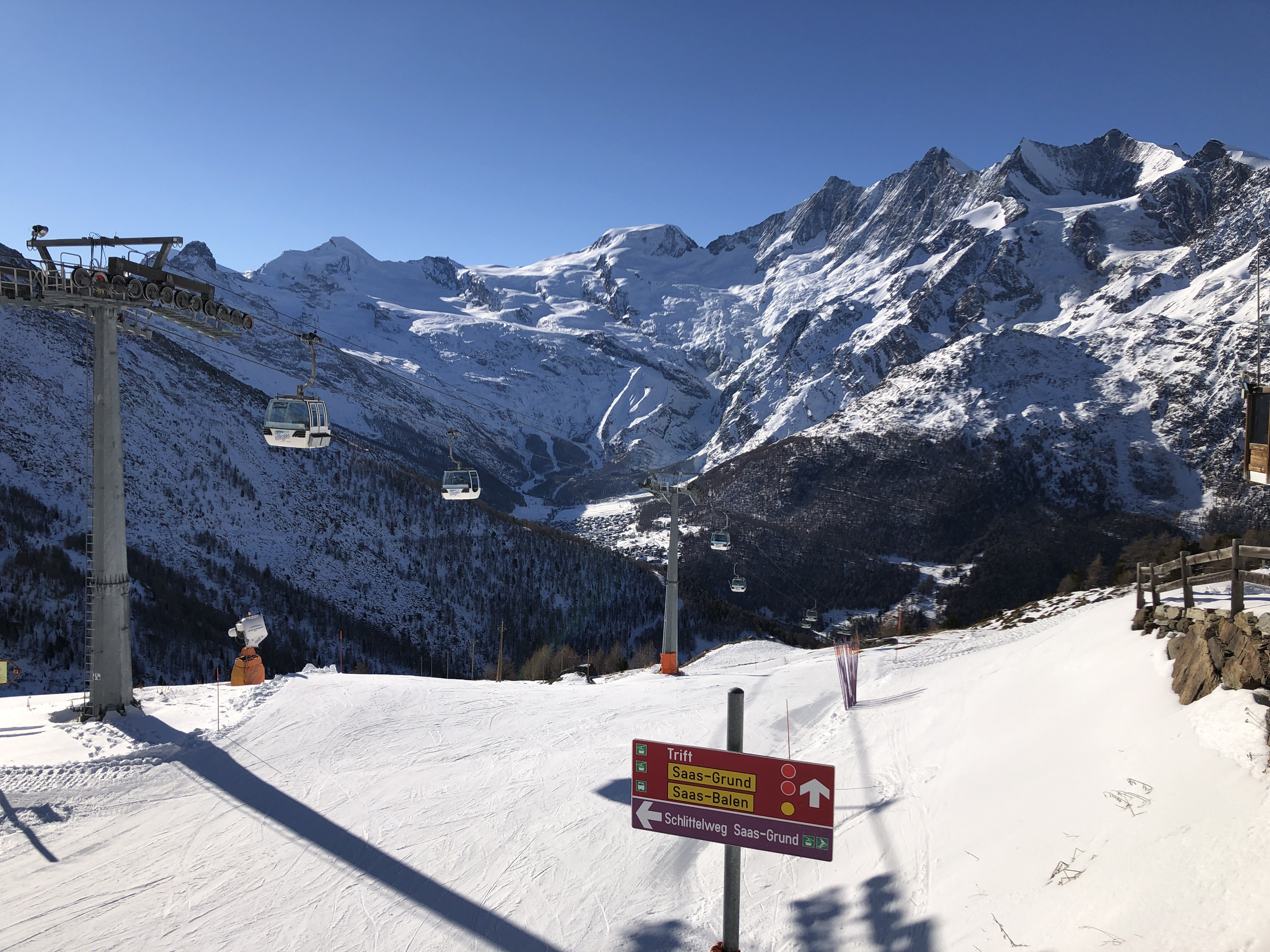 In the immediate vicinity of the base station you can find sports stores and rental facilities. You can also park directly at the valley station. However, there is a charge for the parking lot. If you don't want to drive, you can also get to the gondola station with the PostBus (Saas Valley line).
