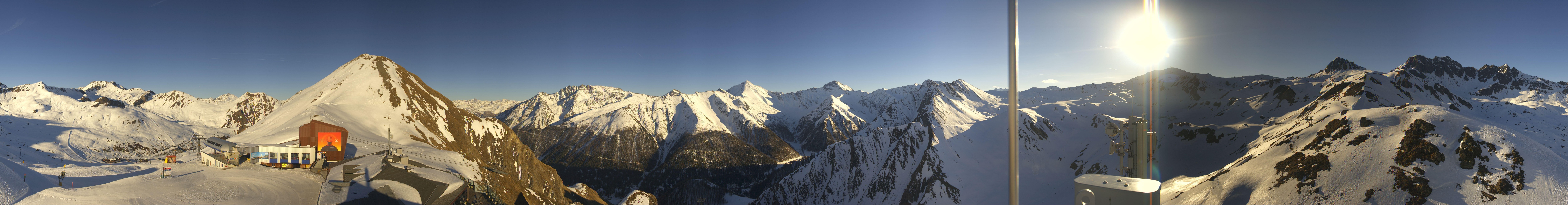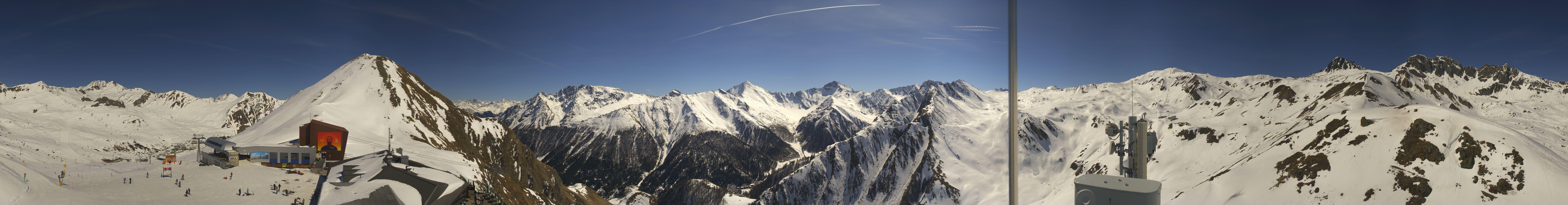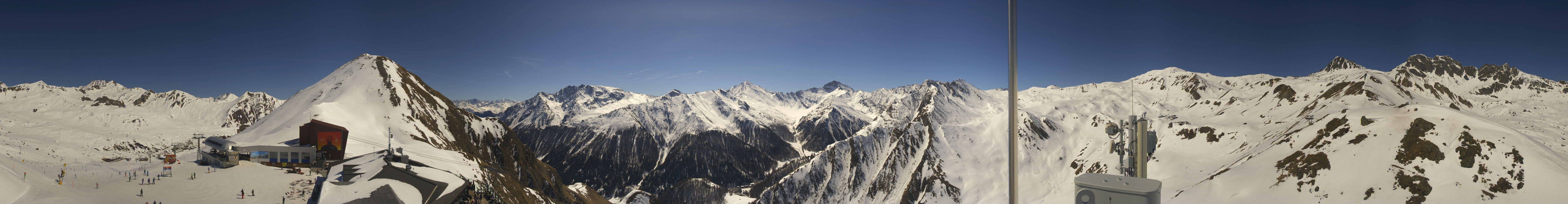 This webcam shows the view over Samnaun (Silvretta Arena) from Alp Trida Sattel lift's top station.