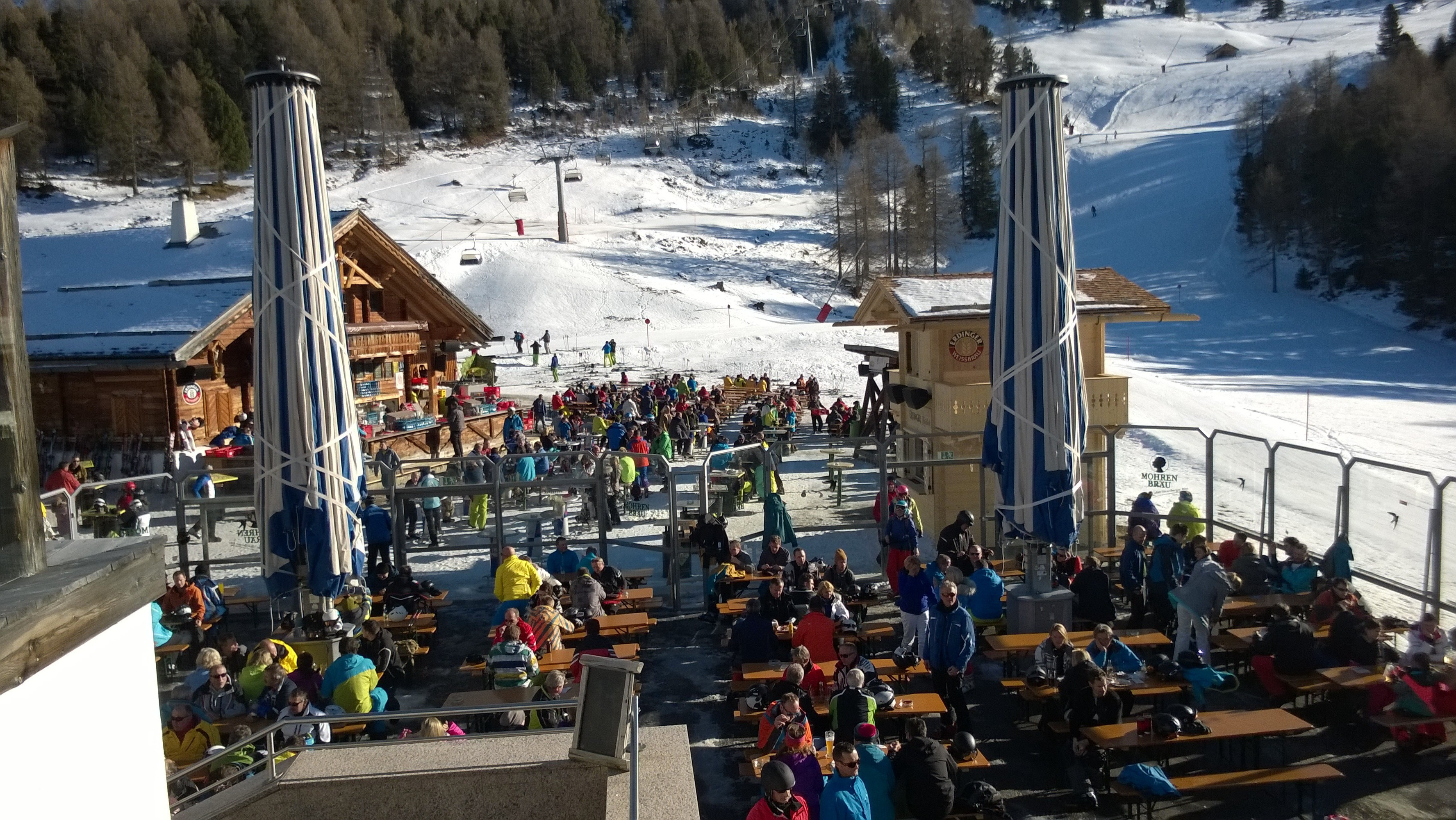 During the day, the Paznauner Taja at the base station of the Paznauner Thayabahn (E1) lift is the ultimate lodge experience at 2,000m. The lodge doesn’t just serve up hearty fare for guests – no matter the weather, the Paznauner Taja always has great music on hand for skiers to have a boogie and a good time. The lodge even has its own webcam, allowing you to check if the party is yet underway: Webcam Paznauner Taja. It’s no unusual sight to see partygoers dancing on the benches and tables here in the afternoon.