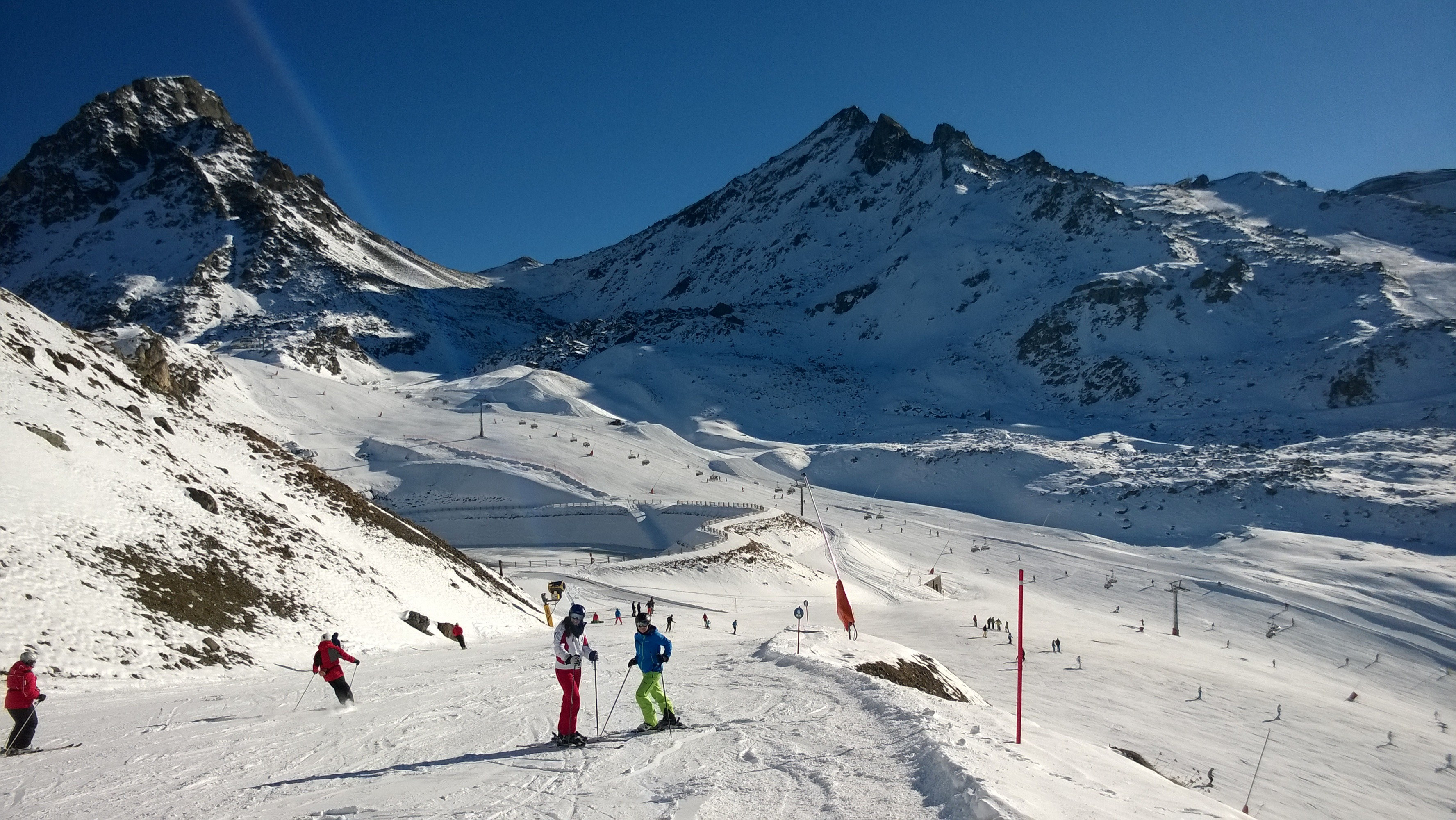 When the kids are a little more confident on their skis, exploring the majority of Silvretta Arena Samnaun Ischgl shouldn’t be a problem. Great blue trails are most notably available in the area around the Flimsattelbahn (N1), Viderjochbahn 1 (N4) and Alp Trider Ecklift (N5) lifts as well as on the slopes around the Idalp. Families with small children should, however, avoid the Greitspitze and the sub-area surrounding Palinkopf (see trail map). Almost all the trails here are pretty tough. Families with small children should probably also avoid both valley runs back down to Ischgl or Samnaun. Particularly in the afternoon, the valley runs can get very icy and difficult to ski on. We recommend that families take the gondola back down into the valley.