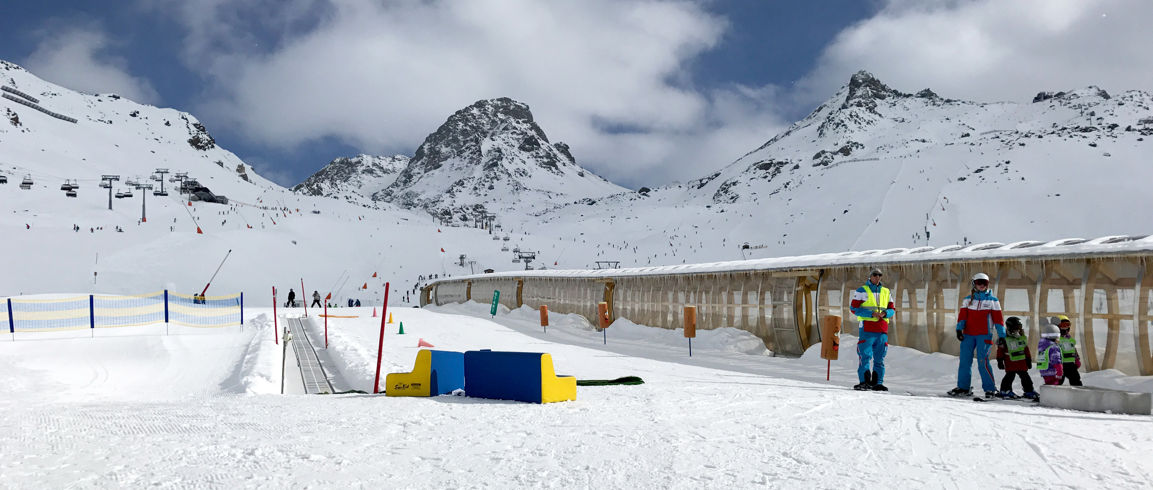 As mentioned in the beginners test category, the Idalp and its numerous blue runs and practice areas around the four practice lifts B6 (surface lift), B7 (surface lift), B9 and B10 (both magic carpet lifts) offer a fantastic area for children and beginners to gain some confidence on two skis. The “Schneesport Akademie”, Ischgl’s largest ski school with around 100 trained instructors, is based directly by the Idalp Restaurant. In addition there is a ski kindergarten for kids in the age between 3 and 5 years, which can be booked every day without pre-registration.