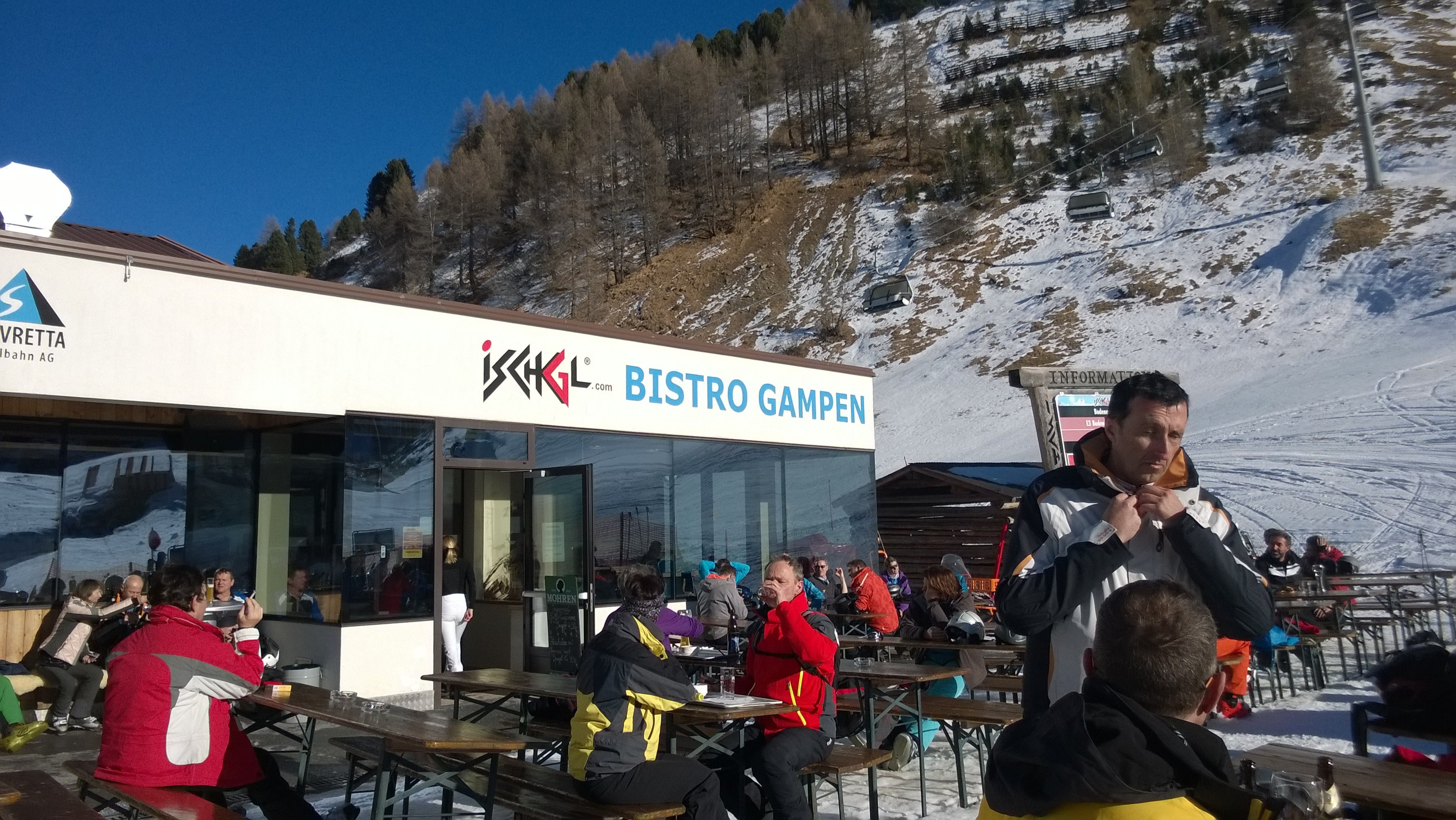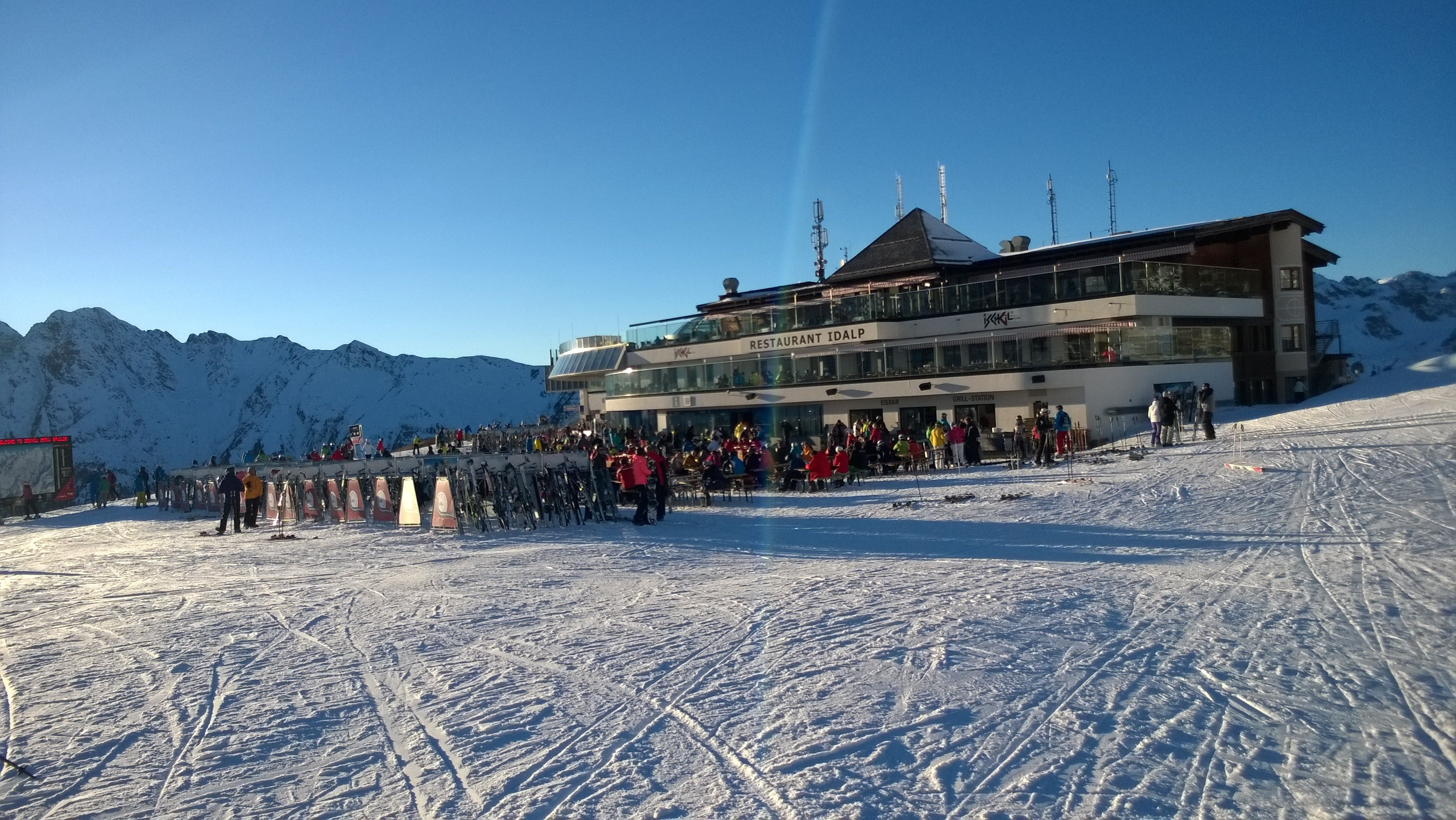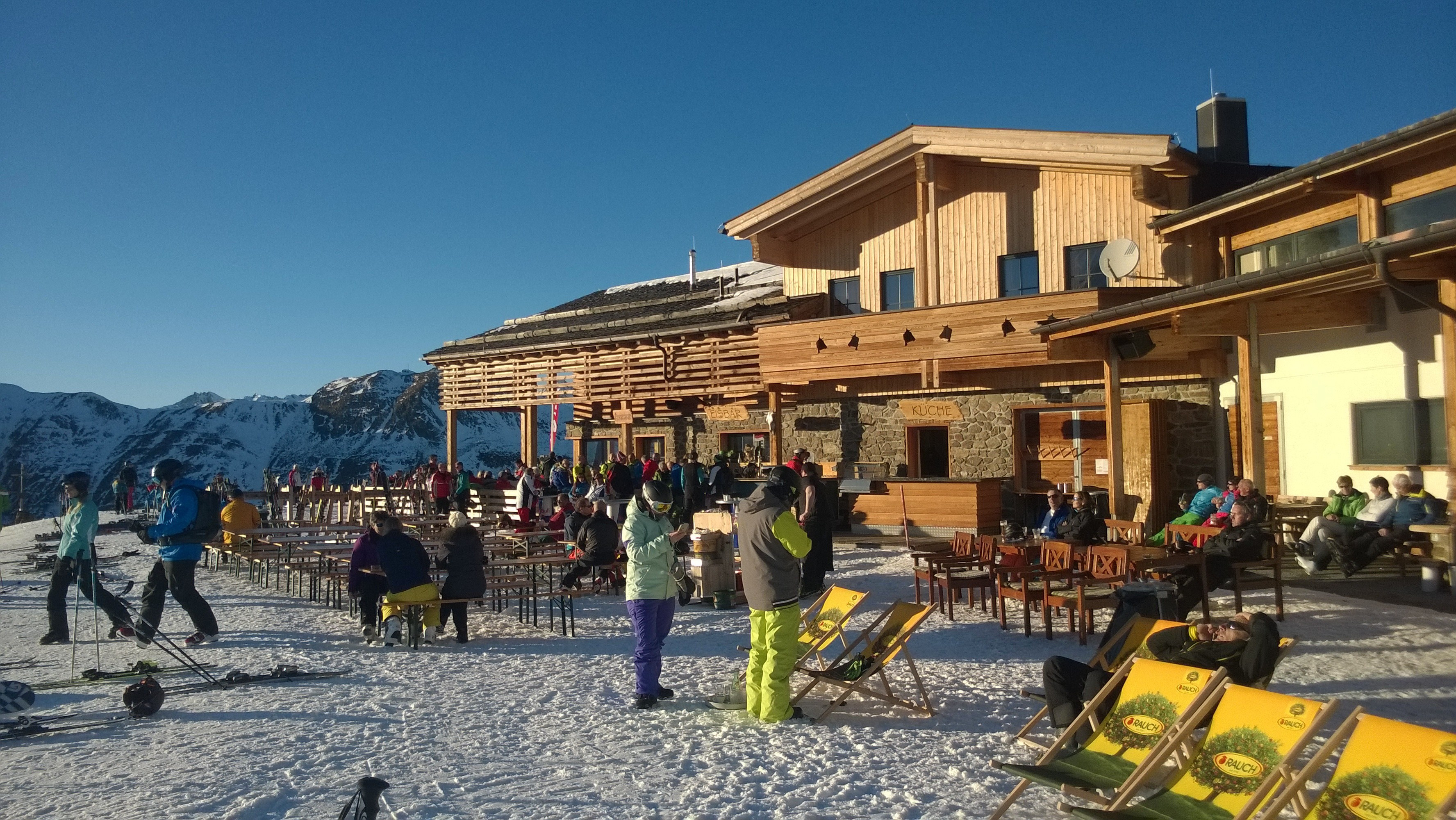 The Vider Alp, located on the sunny side of the Idalp, was a favourite with our test team. It is a contemporary if rustic small restaurant with a quintessential ski lodge atmosphere. There is a lovely sheltered sun deck in the outdoor area, as well as a small bar with music and a selection of deck chairs available.