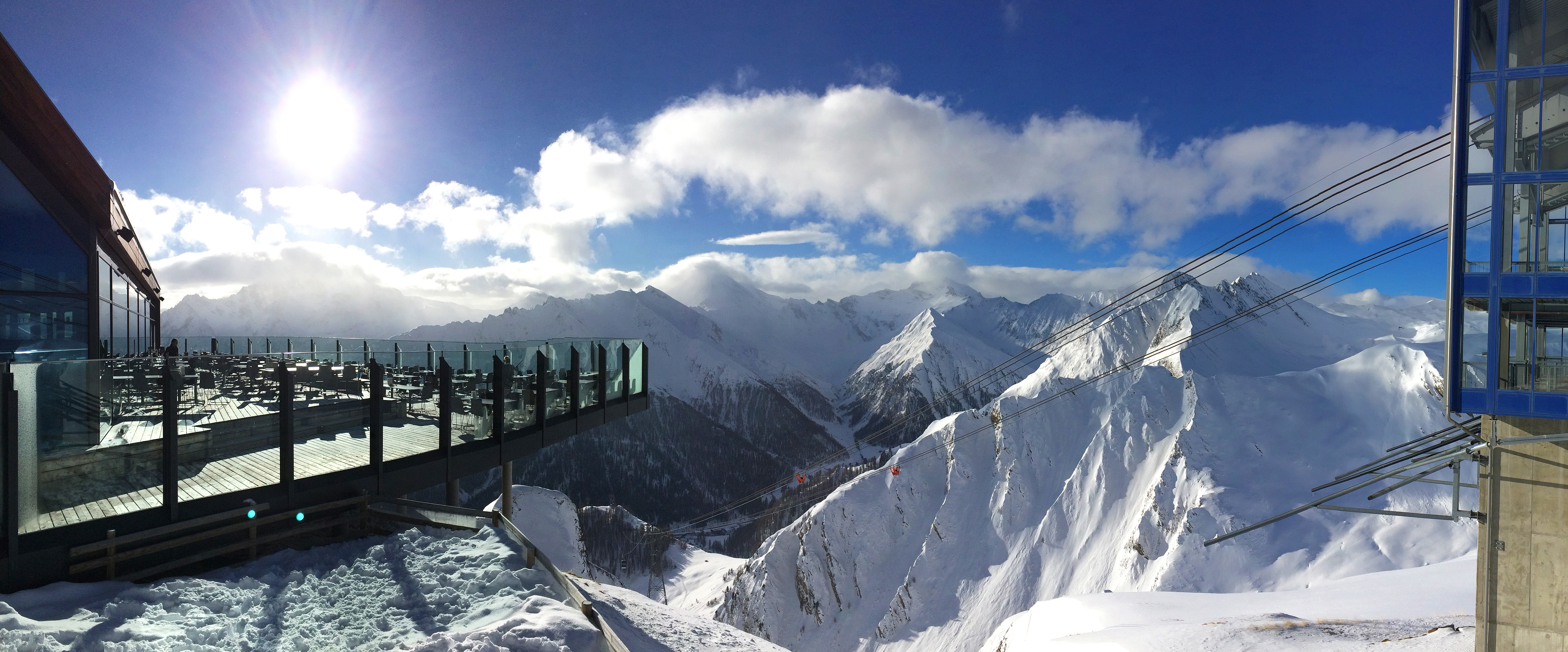 Overall, visitors can choose between 14 mountain restaurants and ski lodges within the Silvretta Arena. You can access the Panoramarestaurant on the 2,300 m Idalp via the Fimbabahn (A3) or Silvrettabahn (A1) directly from the town centre of Ischgl. In addition to a self-service section and kindergarten area, the restaurant also has an à la carte section with waiters, specialising in international cuisine. If you are looking for an even more spectacular view to enjoy over your lunch, then the Pardorama on 2,600 m Pardatschgrat is the place to head for. This contemporary three-floor construction made of glass and steel provides breath-taking views of the surrounding peaks on both sides of the border. If the weather is fine, you can also soak up the winter sunshine on one of the numerous deck chairs available in front of the Pardorama.
