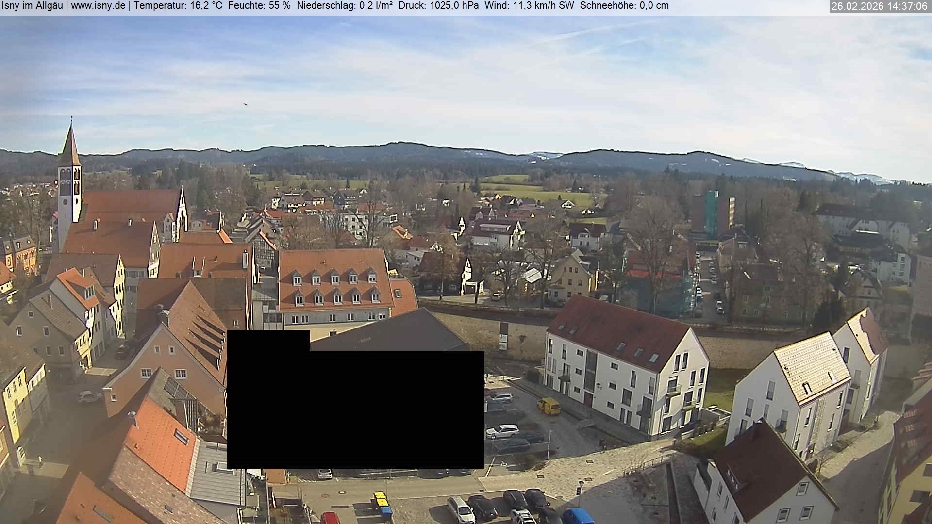 Archived webcam image showing Isny - Allgäu on 26 Feb 2026 at 14:54 13:00