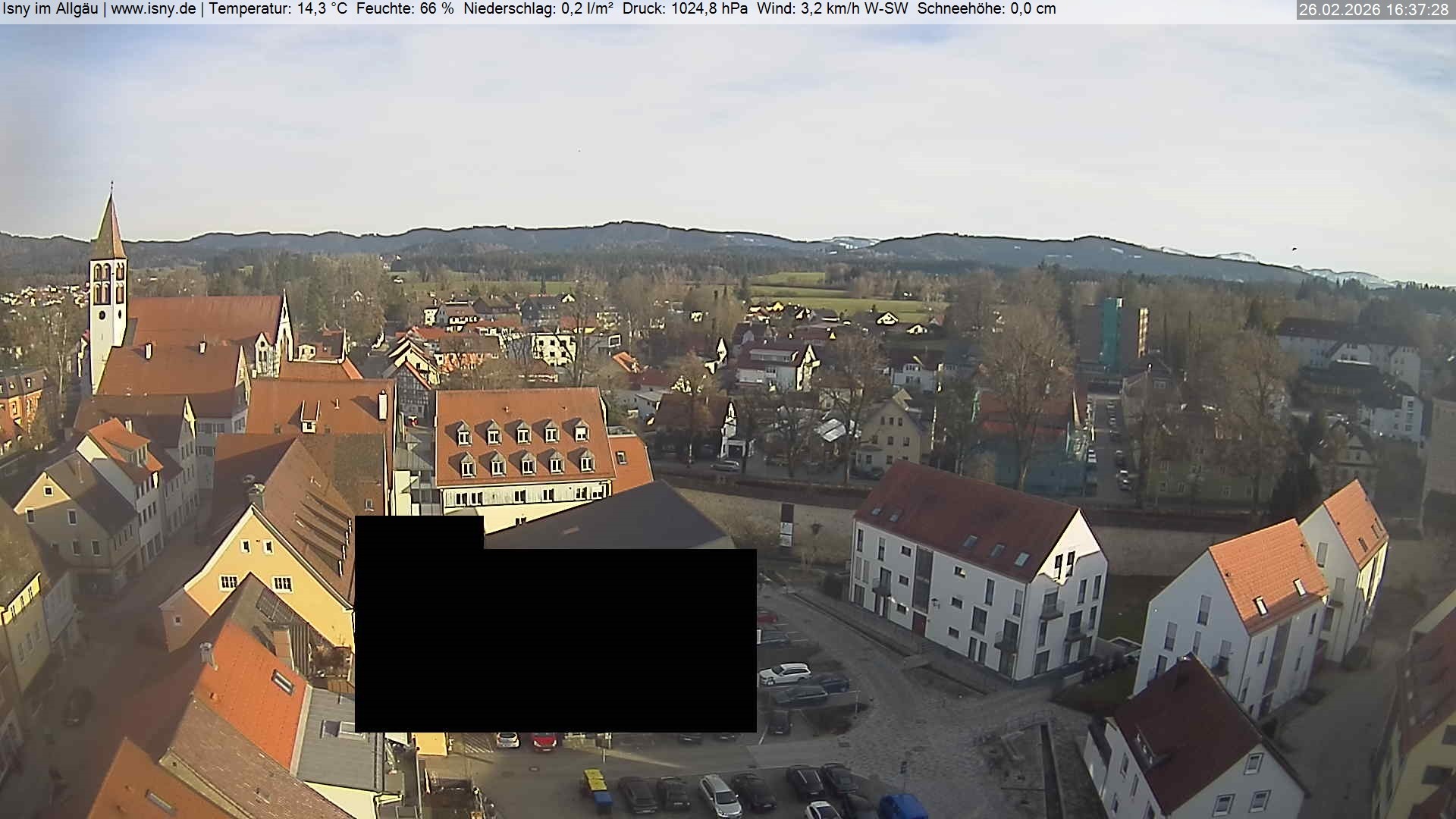 Archived webcam image showing Isny - Allgäu on 26 Feb 2026 at 16:54 Latest