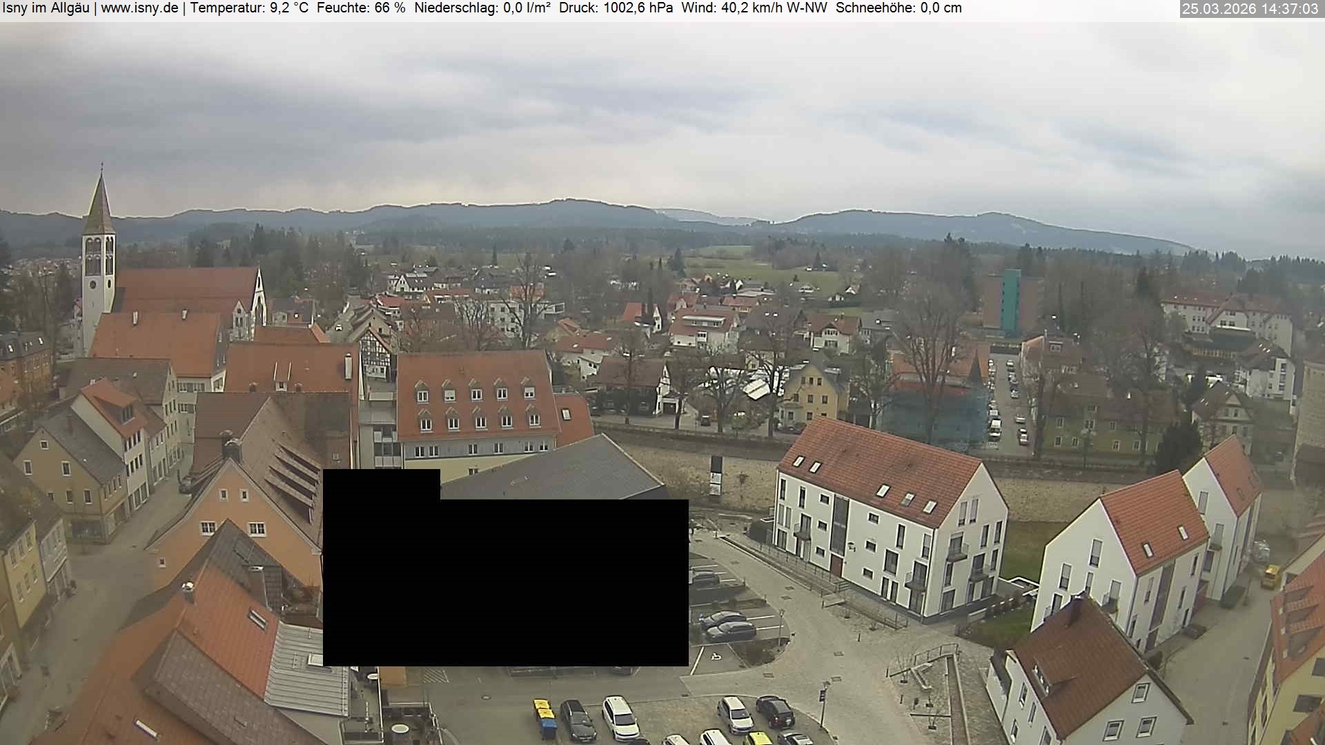 Archived webcam image showing Isny - Allgäu on 25 Mar 2026 at 14:43 Latest