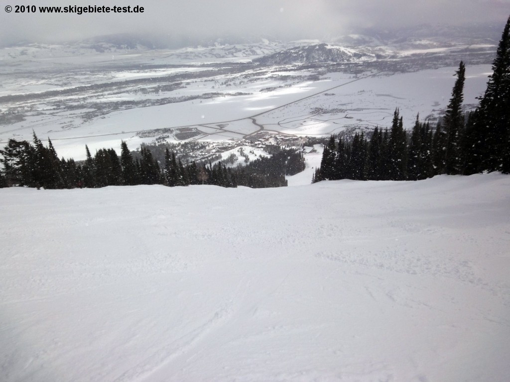 A quick look at the trail map is enough to distinguish where the best bets are for expert skiers and freeriders. The entire west side of the ski area in and below Rendezvous Bowl is littered with steep black diamond slopes. Extreme skiers will find everything their hearts desire, from wide powder slopes to bouldered chutes to tree-skiing. So the brand new tram, which runs every 15 minutes, is going to be the go-to spot for the experts. A further highlight is Corbet's Couloir, below Rendezvous' peak. But Corbet's Couloir is neither for the weak-nerved nor those lacking in physical conditioning, who will definitely have problems with the 13-foot (4m) vertical rocky chute. Coming off of the Bridger Gondola are a few more extreme slopes: a short walk from the upper terminal to the east takes you to Casper Bowl, where chutes such as Greybull and Fremont span back out onto groomed terrain. Conclusion: Jackson Hole offers extremely challenging, world-class freeride slopes which will be present challenges for even the most extreme of skiers for days on end. There is no doubt that Jackson Hole truly deserves our highest possible rating of 5 stars in the Freeriders/Experts category.