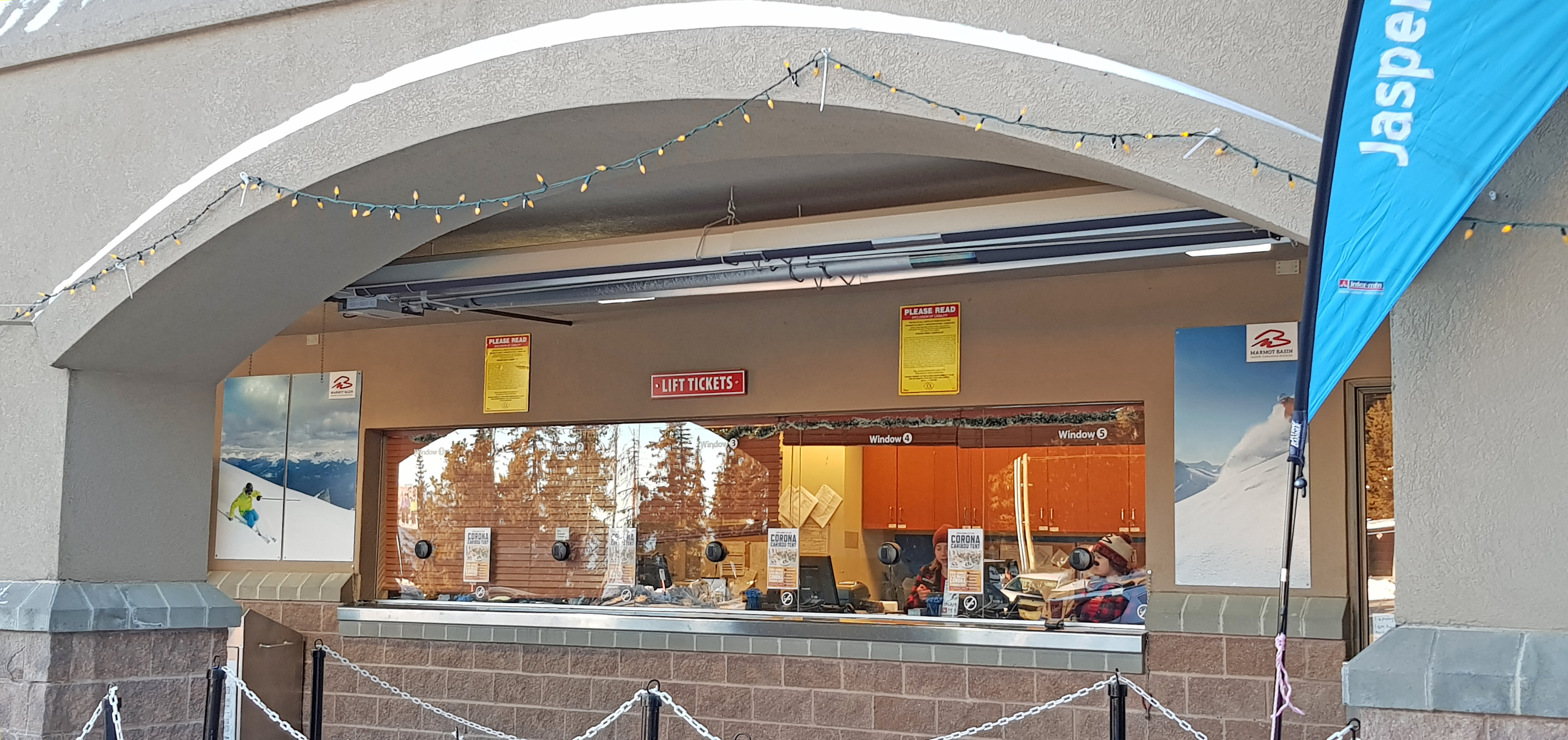 Ticket booth at the entry to Marmot Basin. © Skigebiete-Test/k.huber