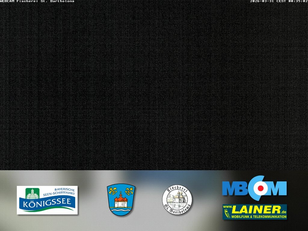 Archived webcam image showing St. Bartholomae and Lake "Koenigssee" on 31 Mar 2026 at 00:01 23:00
