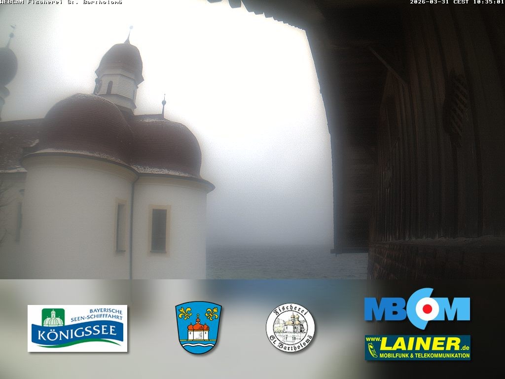 Archived webcam image showing St. Bartholomae and Lake "Koenigssee" on 31 Mar 2026 at 10:01 09:00