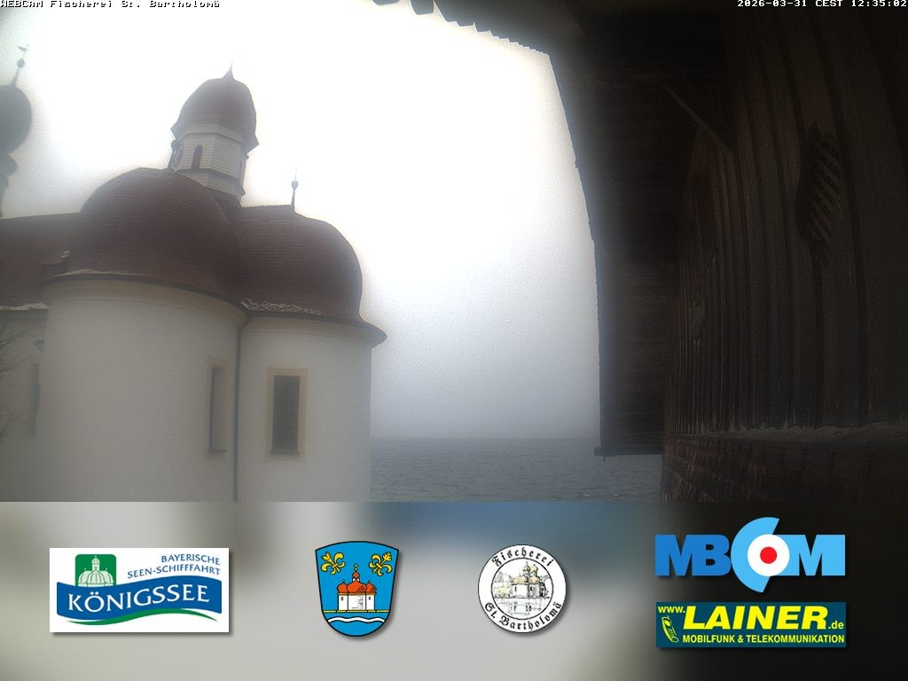 Archived webcam image showing St. Bartholomae and Lake "Koenigssee" on 31 Mar 2026 at 12:01 11:00