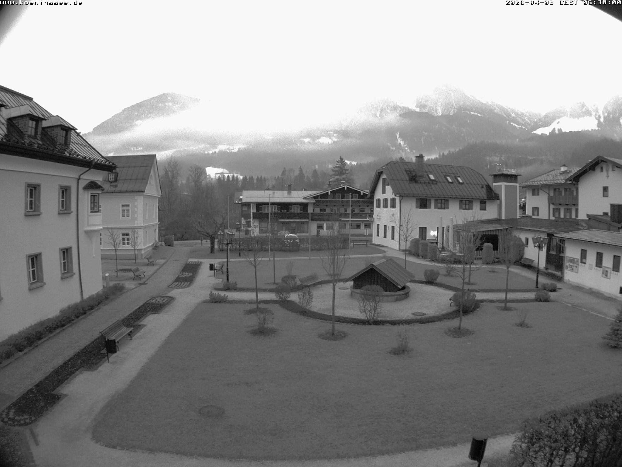 Archived webcam image showing Tourist Information Koenigssee on 3 Apr 2026 at 06:56 05:00
