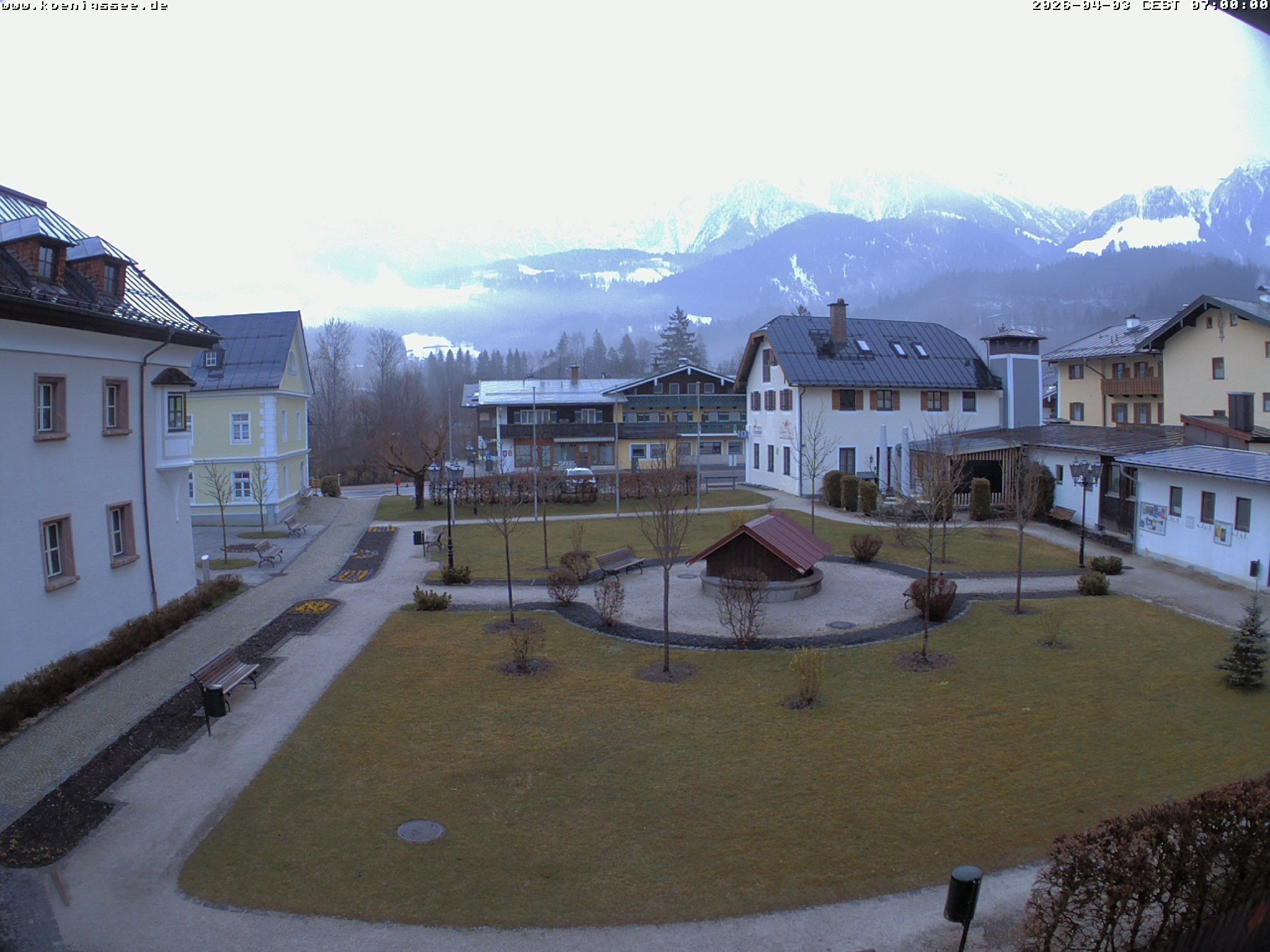 Archived webcam image showing Tourist Information Koenigssee on 3 Apr 2026 at 07:56 06:00