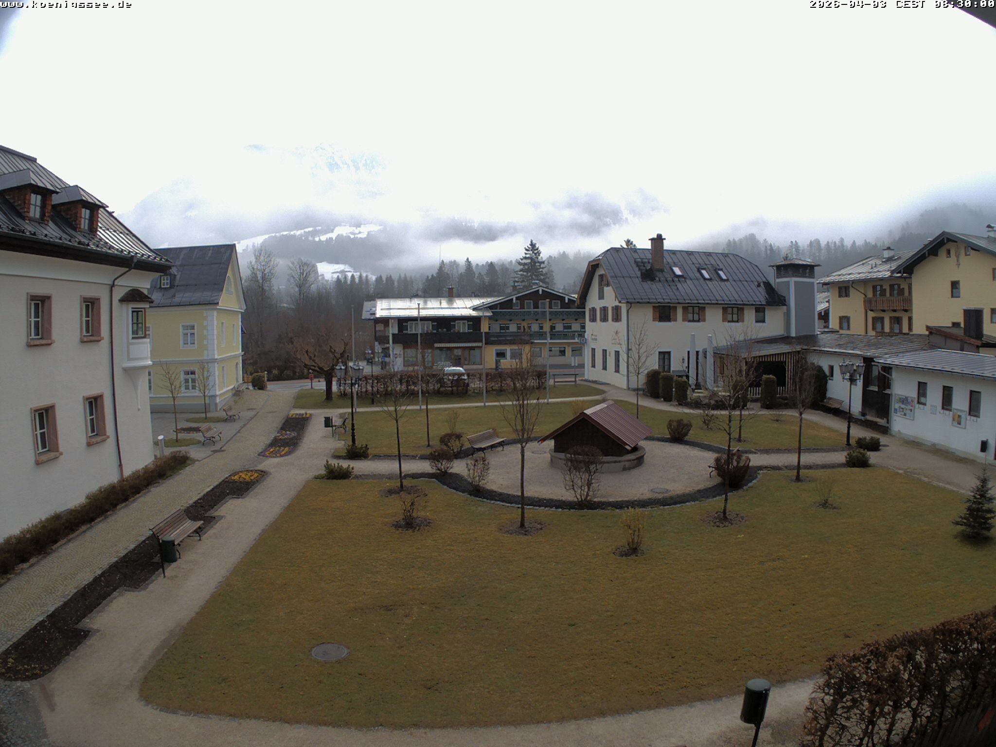 Archived webcam image showing Tourist Information Koenigssee on 3 Apr 2026 at 08:56 07:00