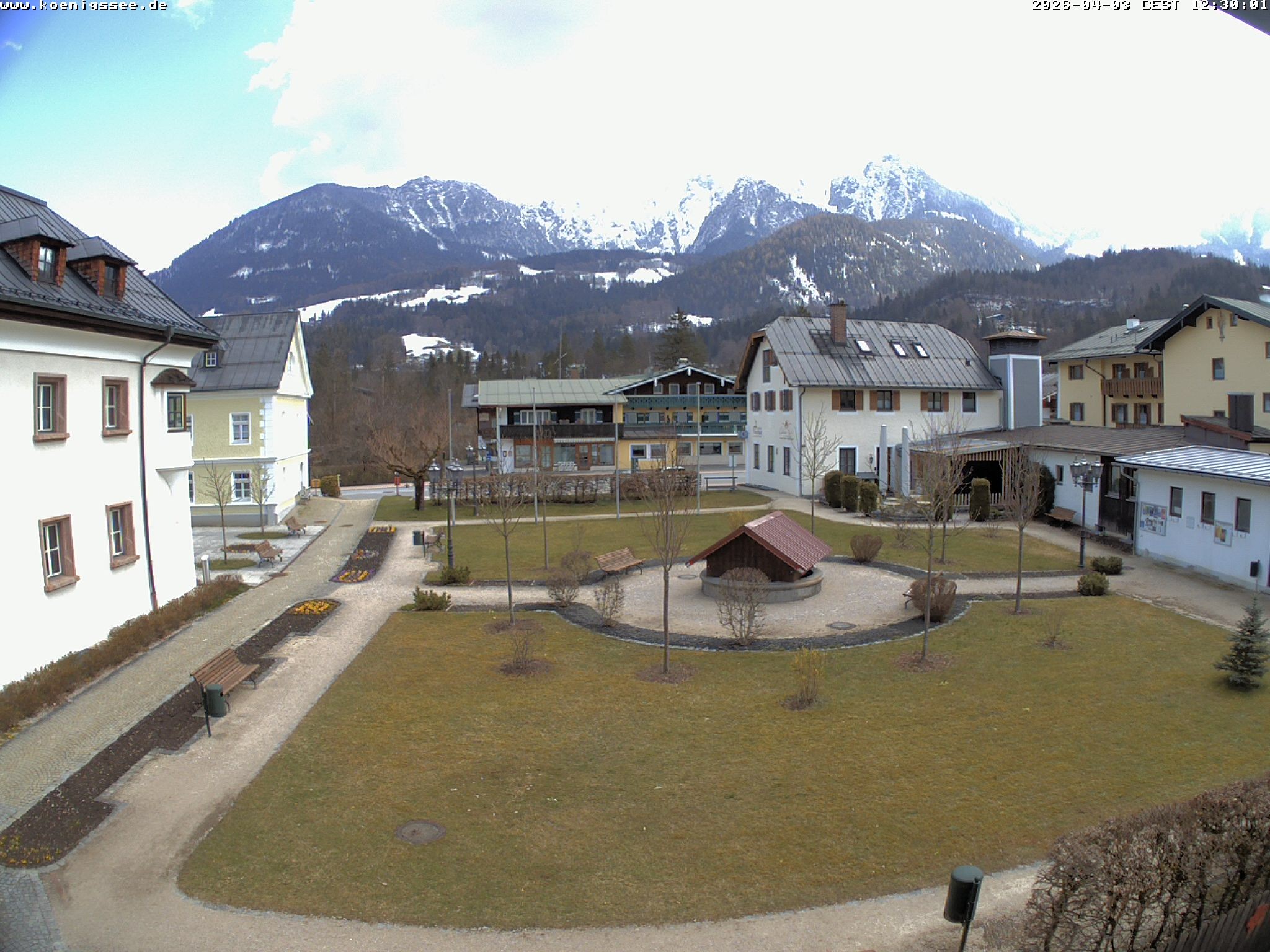 Archived webcam image showing Tourist Information Koenigssee on 3 Apr 2026 at 12:56 11:00