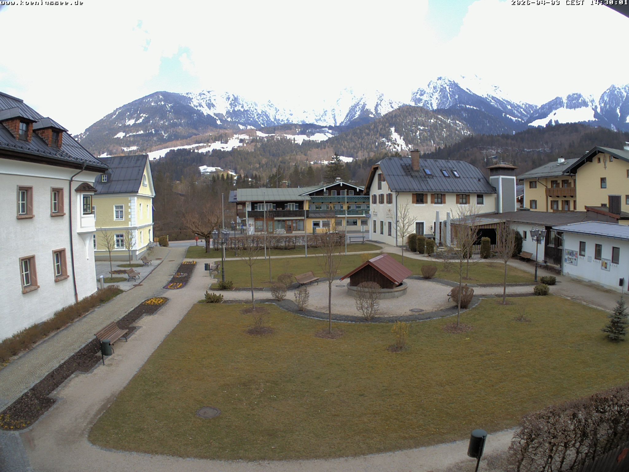 Archived webcam image showing Tourist Information Koenigssee on 3 Apr 2026 at 14:56 13:00