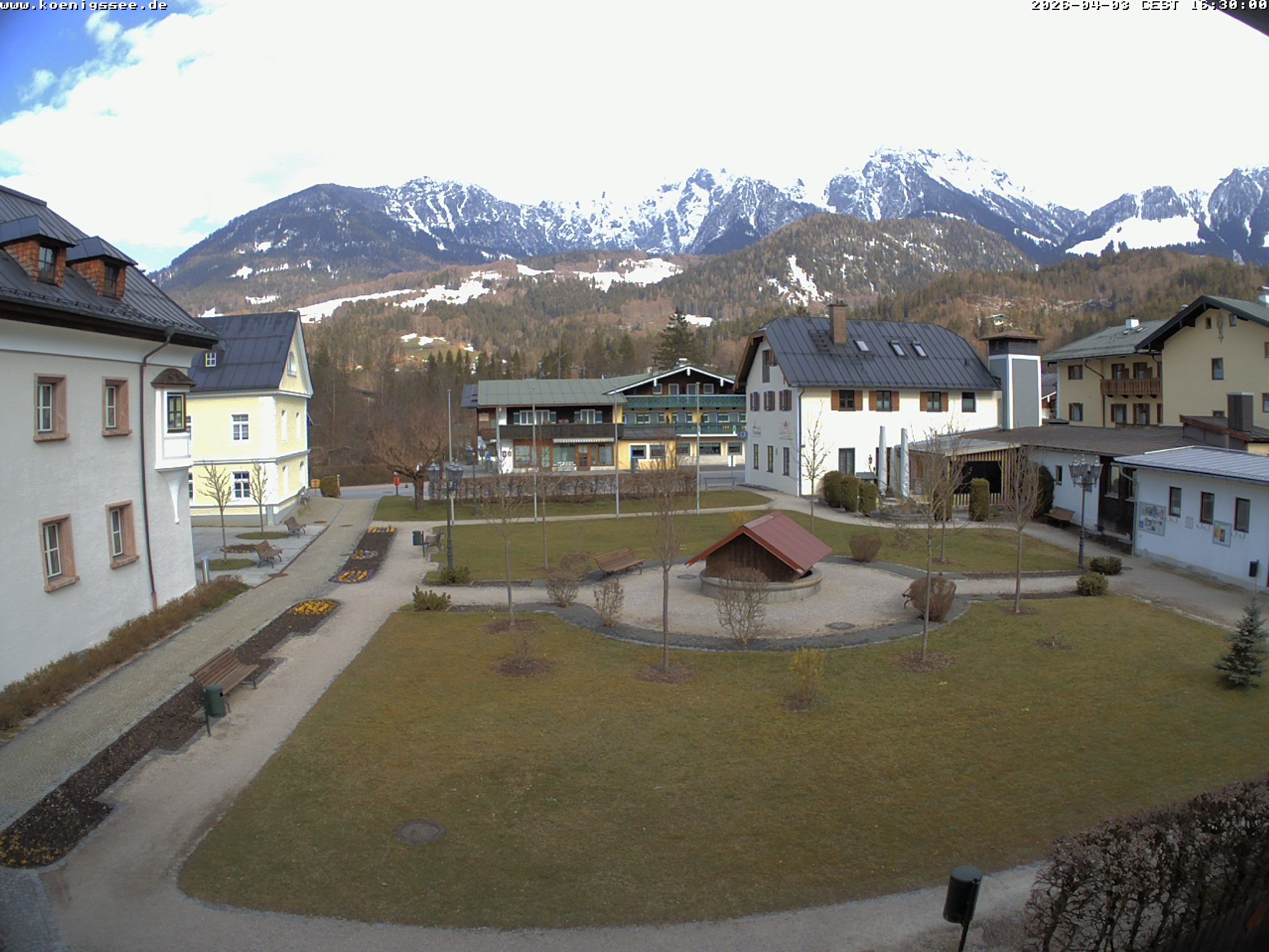 Archived webcam image showing Tourist Information Koenigssee on 3 Apr 2026 at 16:56 15:00