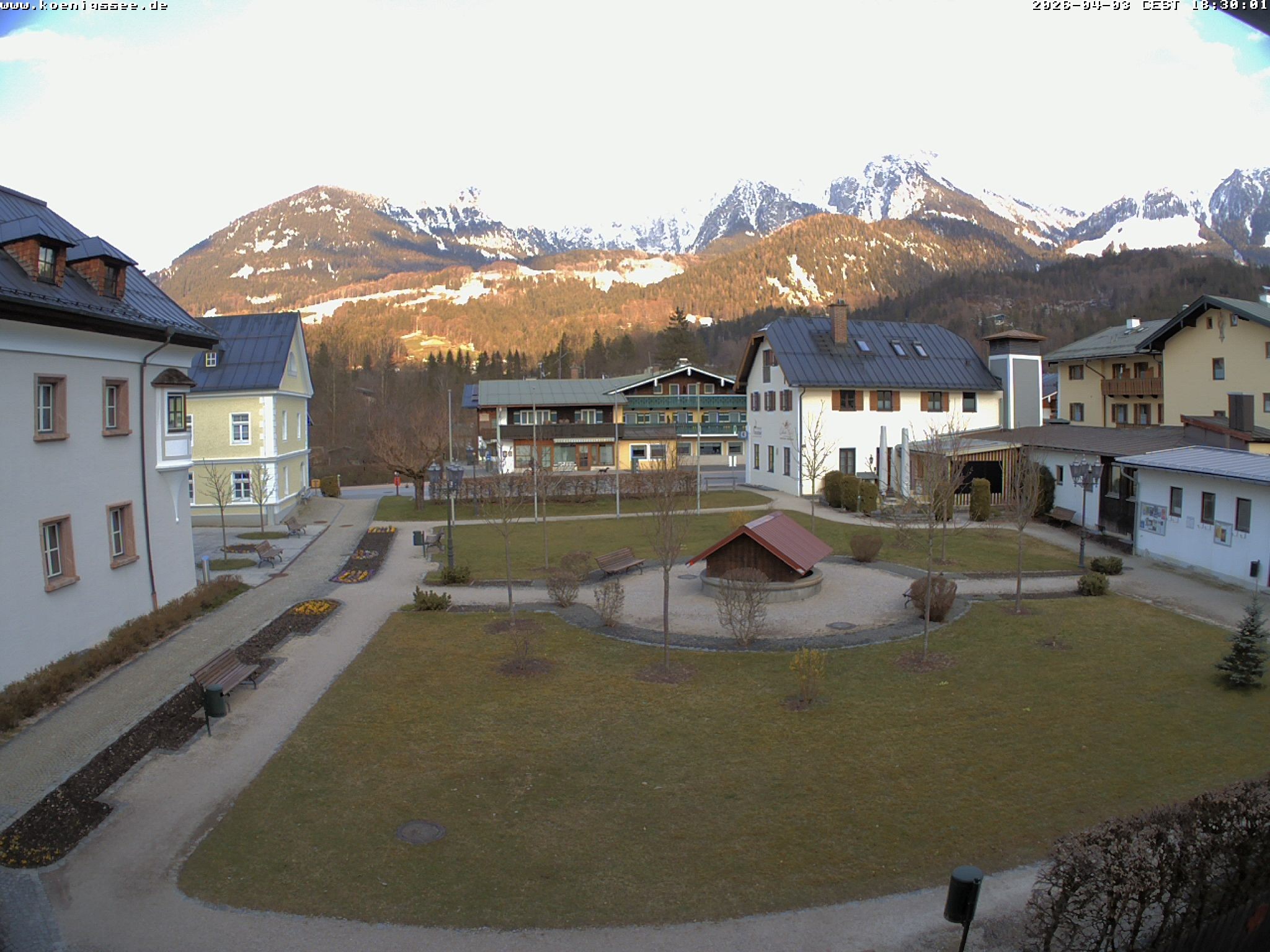 Archived webcam image showing Tourist Information Koenigssee on 3 Apr 2026 at 18:56 17:00
