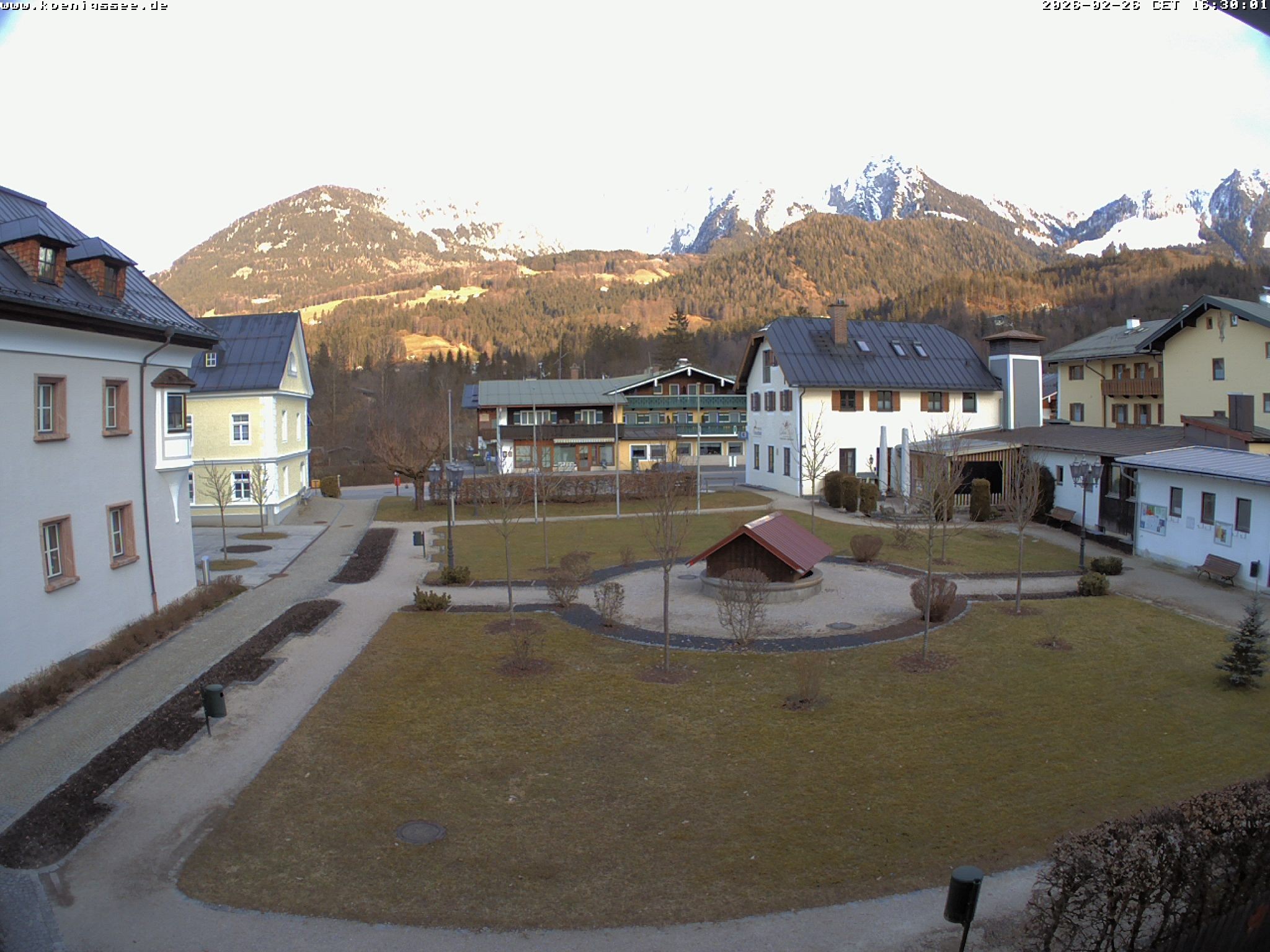 Archived webcam image showing Tourist Information Koenigssee on 26 Feb 2026 at 06:41 05:00