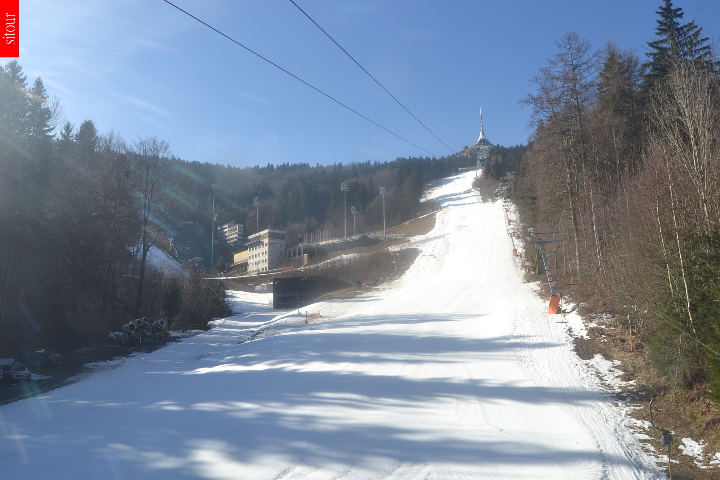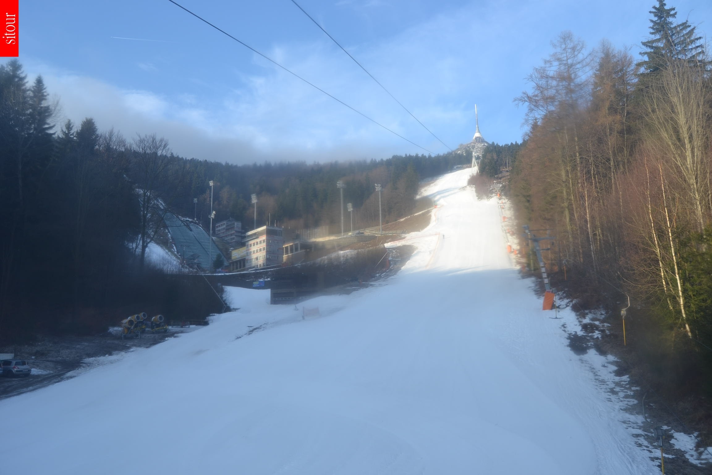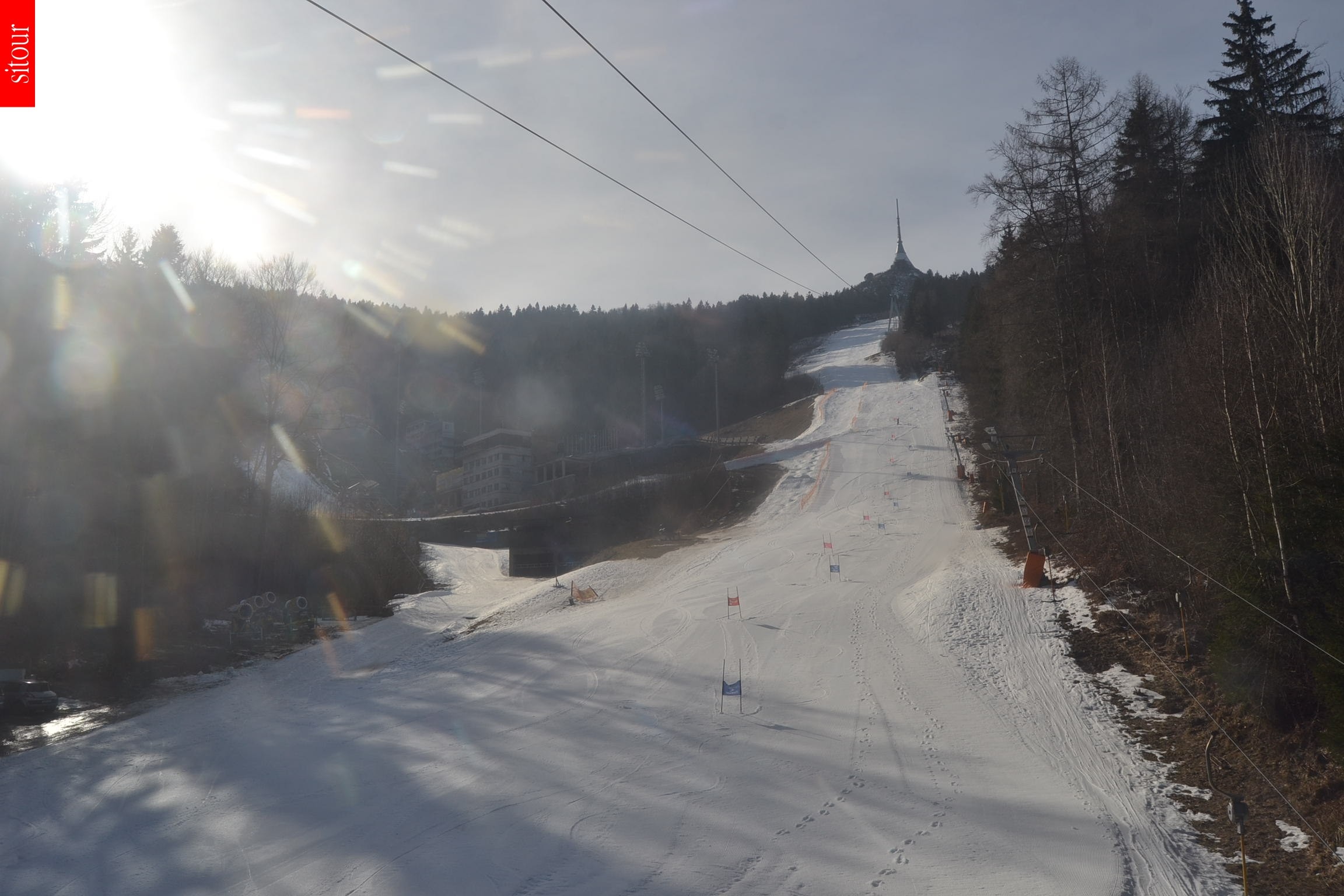 This webcam is installed at top station of chairlift Cerny Vrch in czech ski resort Ještěd. It provides a good view towards the valley, the city Liberec and the surrounding hill landscape.