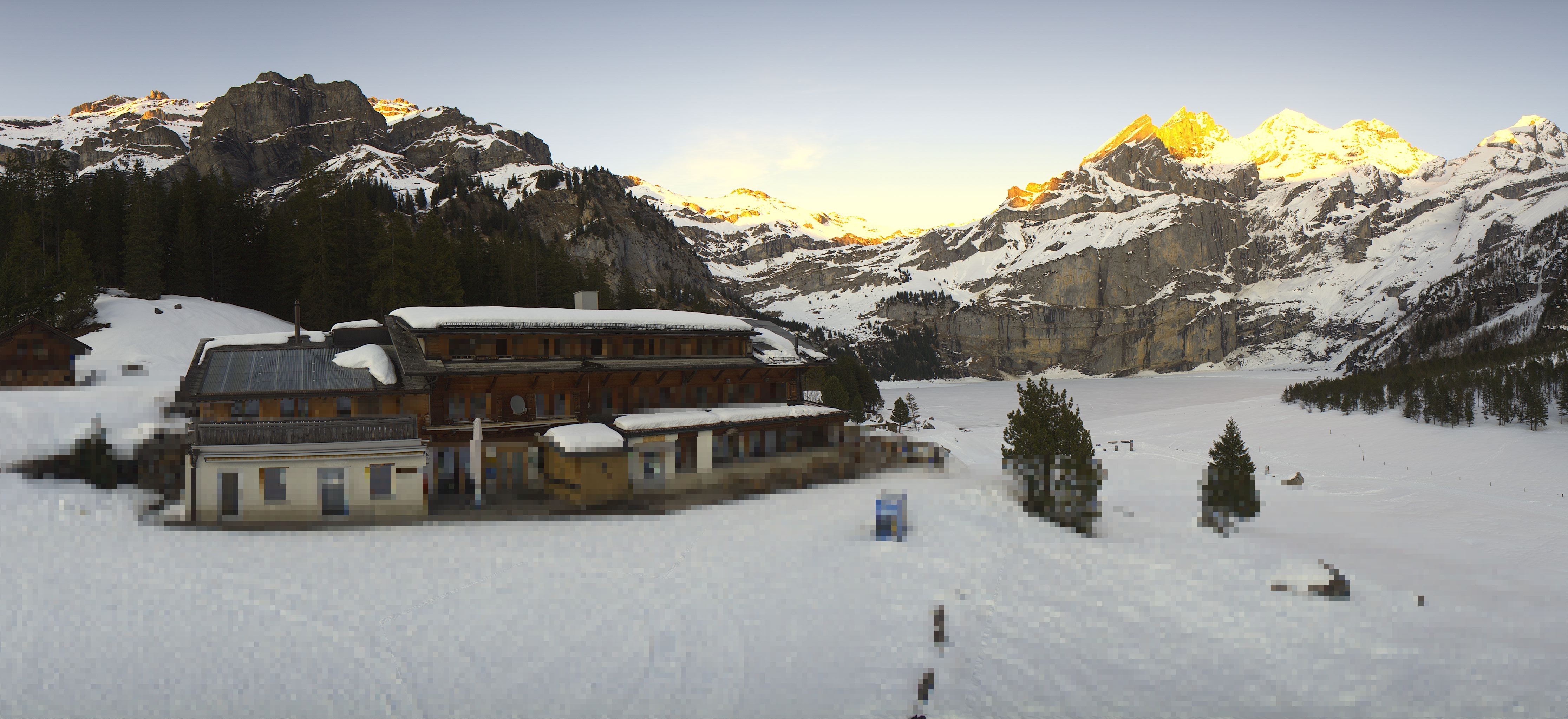 Archived webcam image showing Kandersteg: Lake Oeschinensee on 26 Feb 2026 at 06:51 05:00