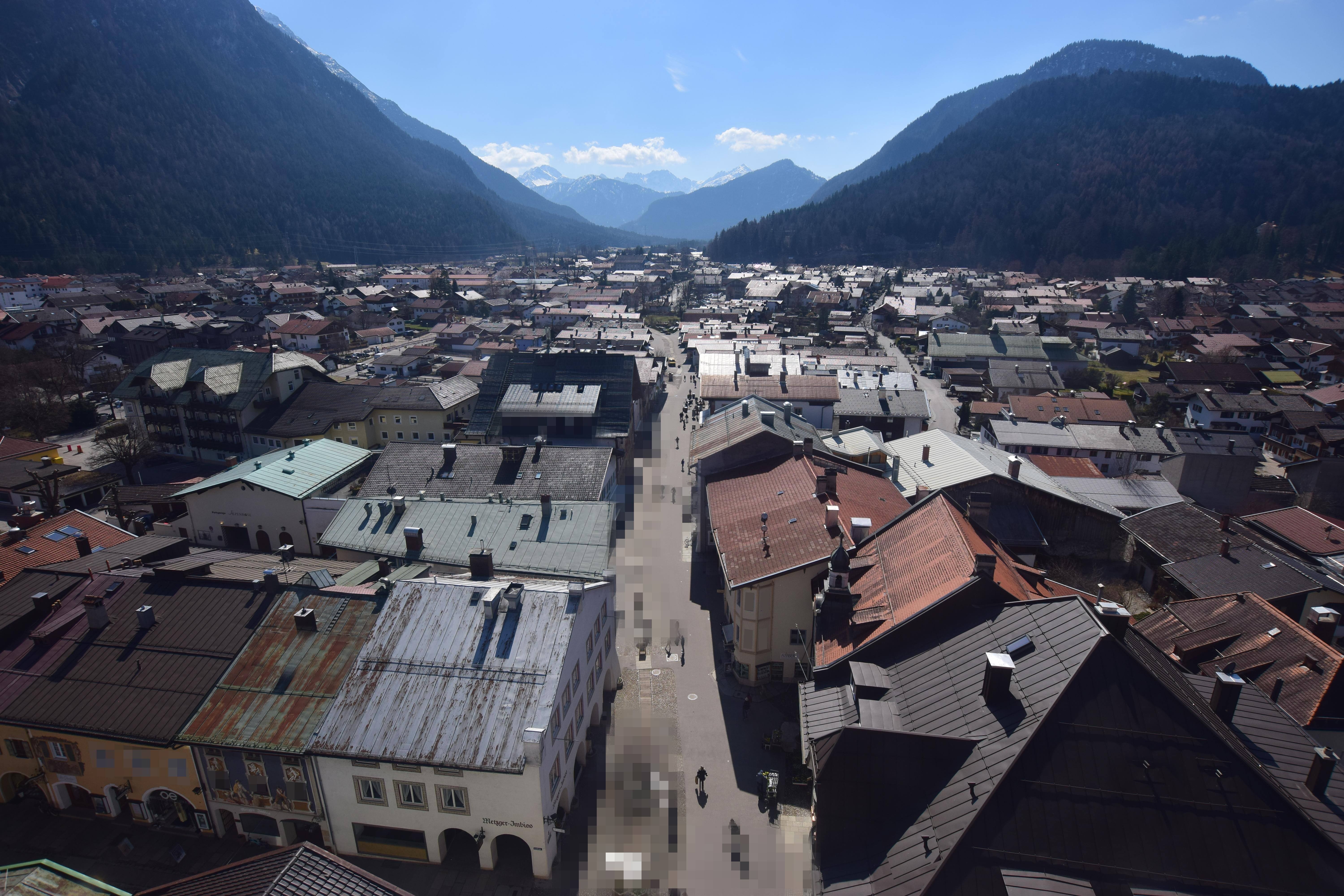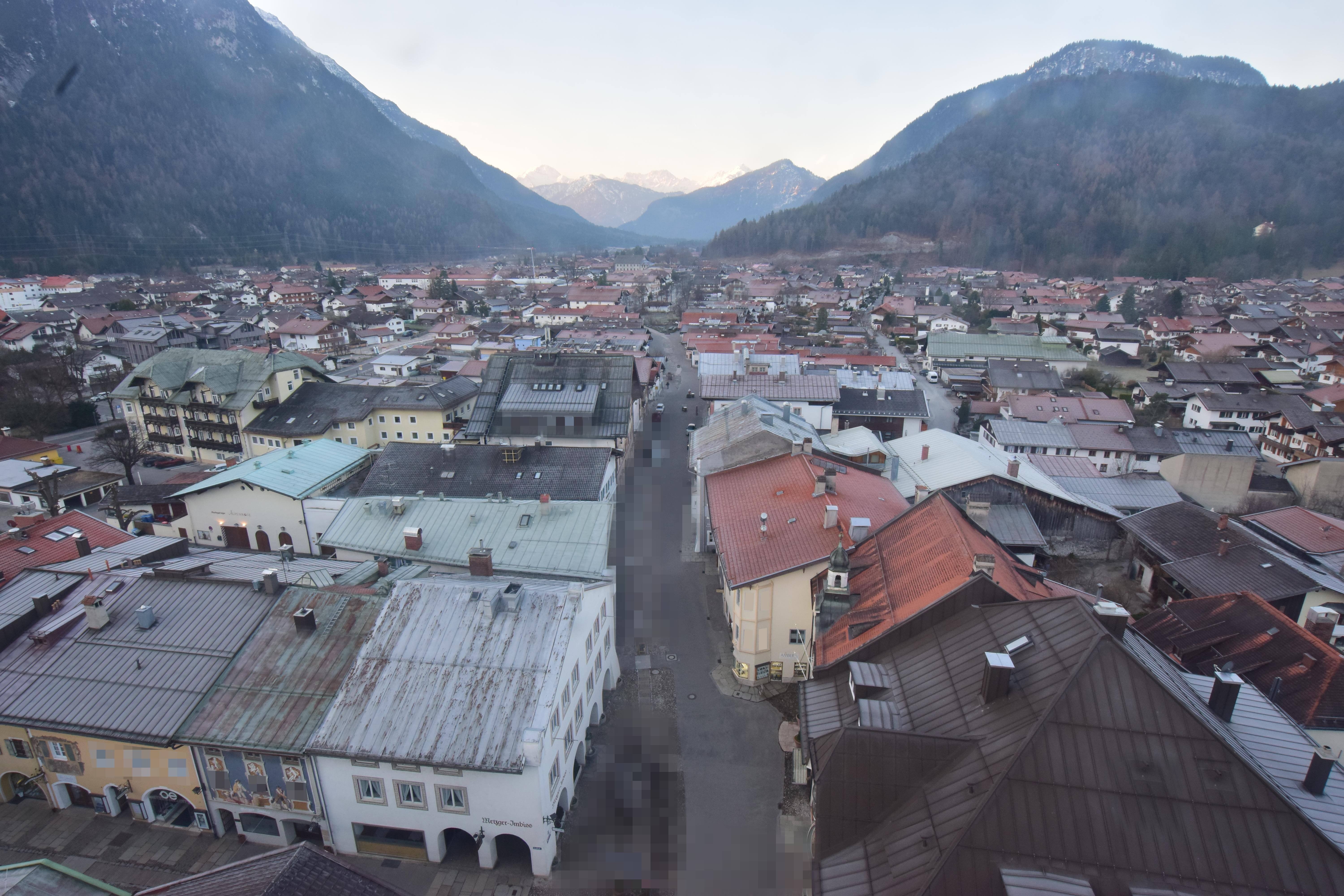 The webcam shows the view from church St. Peter and Paul over the town of Mittenwald. This is where the ski resort Karwendel Mittenwald is located.