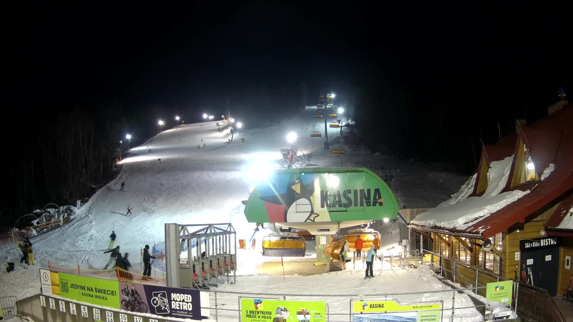 You can see the base station of the 6-seater chair lift in the Polish ski resort Kasina at the 1,007-metre-high Śnieżnica.
