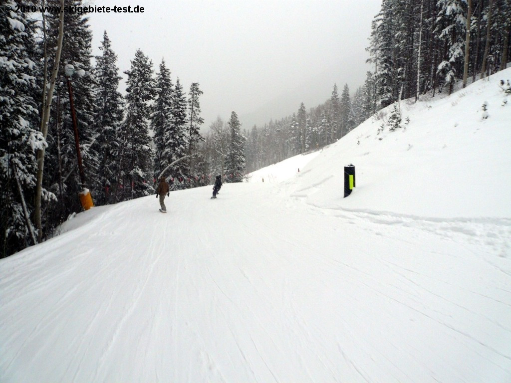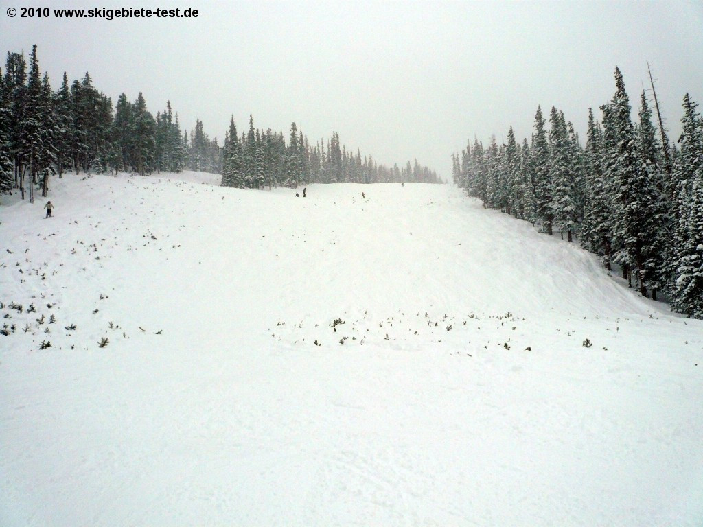 Colorado is among the most beautiful ski regions in the world. Every skilled skier should ski in the USA at least once. And Keystone is an absolute must-do (or must-ski :-) ). A total of 407 hectares of intermediate terrain are at the visitors’ disposal. Definitely enough to entertain athletic skiers for several days! Especially at “Dercum Mountain” and at the “North Peak” (see trail map) beautiful intermediate level slopes like the "Frenchman", "Santa Fe" or "Spilway" are to be found. But also at the third peak “the Outback” several nice intermediate trails are located round the “Outback Express”. Apart from the groomed slopes there is more challenging ungroomed terrain to be enjoyed every where. The “Cat Dancer” at the “North Peak” for instance or the numerous “Tree Runs” below the “Outpost Gondola” (see trail map). With some caution we think any black run can be mastered by intermediate skiers. Solely the “Powder Runs” at the remoter corners of the resort in the “Independence Bowl”, “Erickson Bowl" or "South Bowl" should be left to expert skiers solely. The terrain cannot be accessed via lift facilities but only on foot anyway. The soaring mountain scenery at Keystone with views of even the lake in Dillon completes the very good result in the intermediate skier category. 4 out of 5 possible stars.