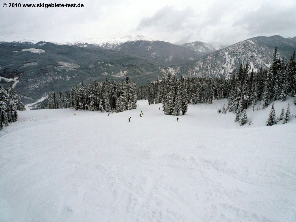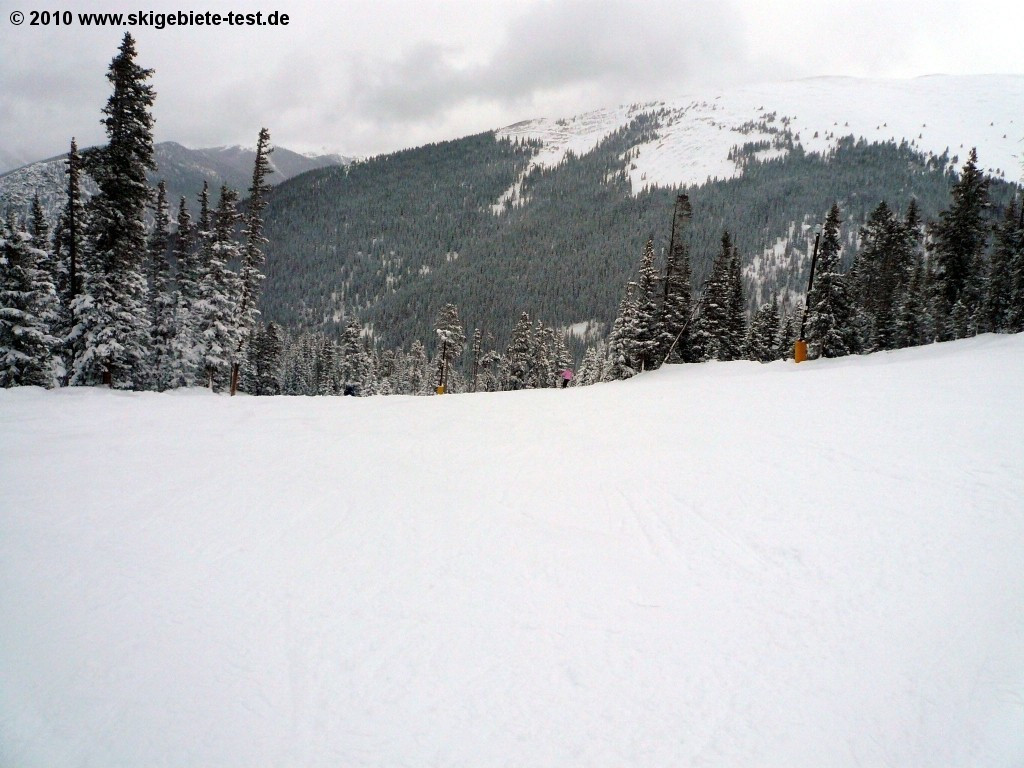 At the 3548m high “Dercum Mountain” novices will find some nice beginner terrain. Round the “Discovery” chair in the valley (see trail map) beginners will find 4 carpet lifts that will take them up and around the slope. The perfect place for an easy and convenient introduction to snow-sports! Located at the base of the “River Run Gondola” is another small practicing area with a magic carpet lift. If the "first steps" on skis have been successful the easy slopes "Ripperoos Road" , "Silver Spoon" and "Jack Straw" at "Dercum Mountain" are excellent terrain for a longer slide down the mountain. We recommend beginners however to make use of the excellent ski school programmes as they have two very nice ski school areas at their disposal, the “Schoolmaster-Go” and the “Go Further” both located in the upper areas of the “River Run Gondola” and the “Peru Express” (see trail map). Unfortunately we cannot recommend beginners to venture into the grounds at the other two mountains (“North Peak” and “The Outback”). There is not one single easy slope to be found there but lots of difficult terrain and numerous off-piste tracks. Our conclusion: The slopes at the “Dercum Mountain” are definitely beginner friendly and especially the practicing area at the “Discovery Chair” is to be praised! Unfortunately novices to snow-sports cannot access most of the predominantly difficult terrain in Keystone, therefore 3,5 out of 5 stars!