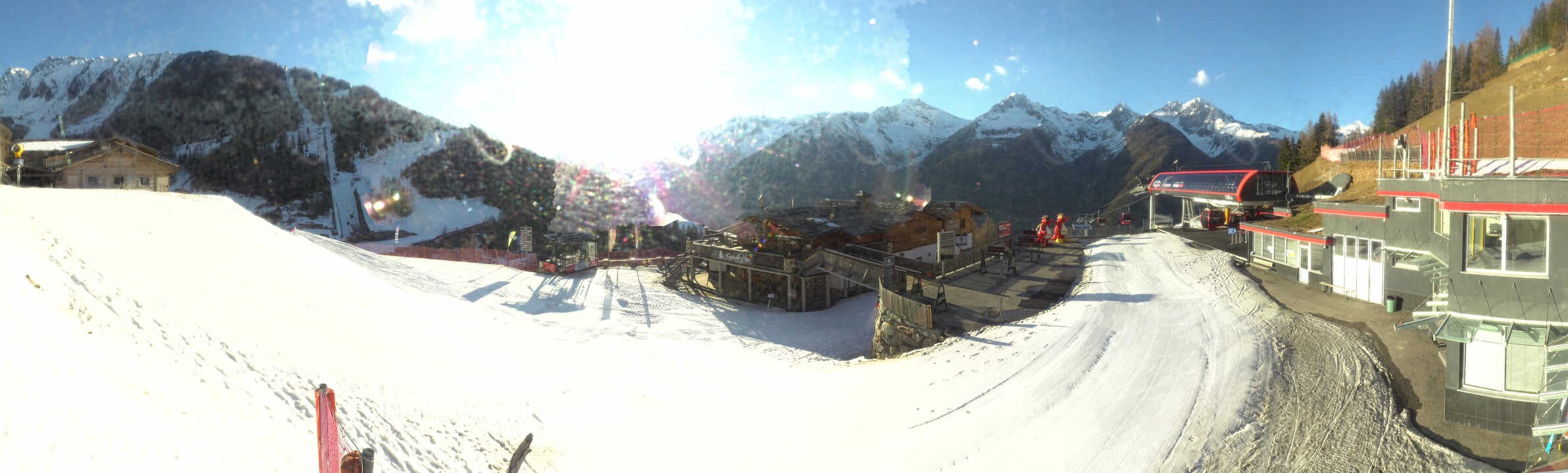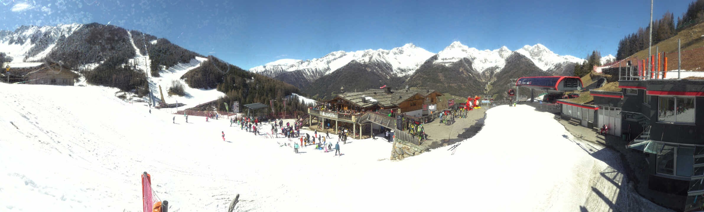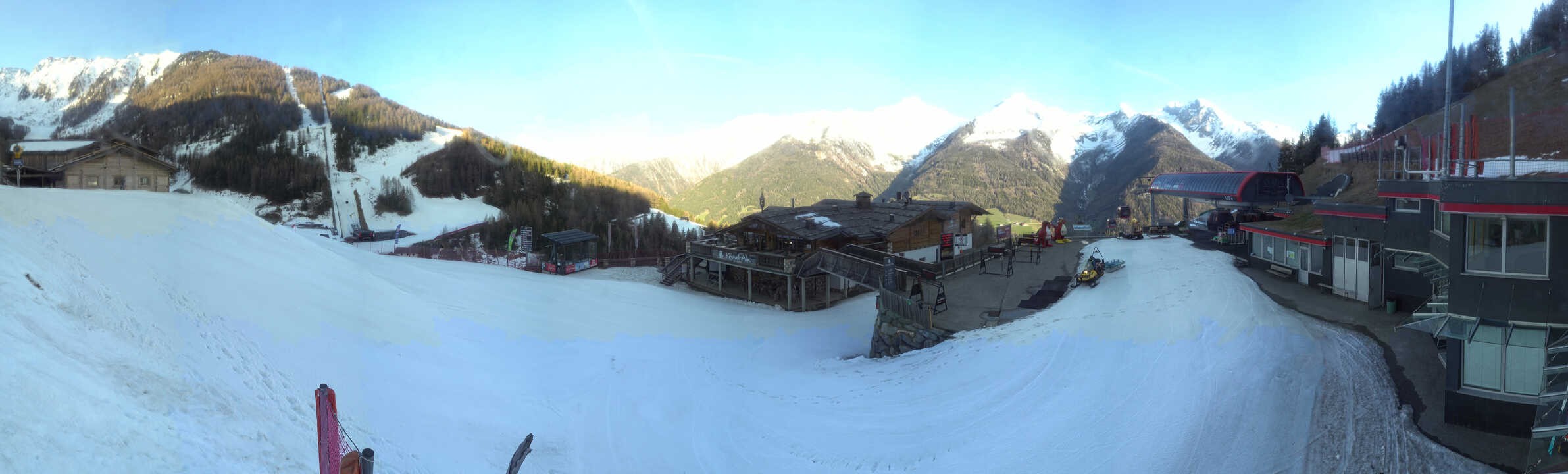 The webcam faces mountain restaurant Kristallalm at 1.600 m above sea level. It is located next to top station Klausberg in the south tyrolean ski resort of the same name. A DJ entertains skiers at the sun terrace and provides good Apres-Ski. Furthermore, one can enjoy delicious south tyrolean specialities.