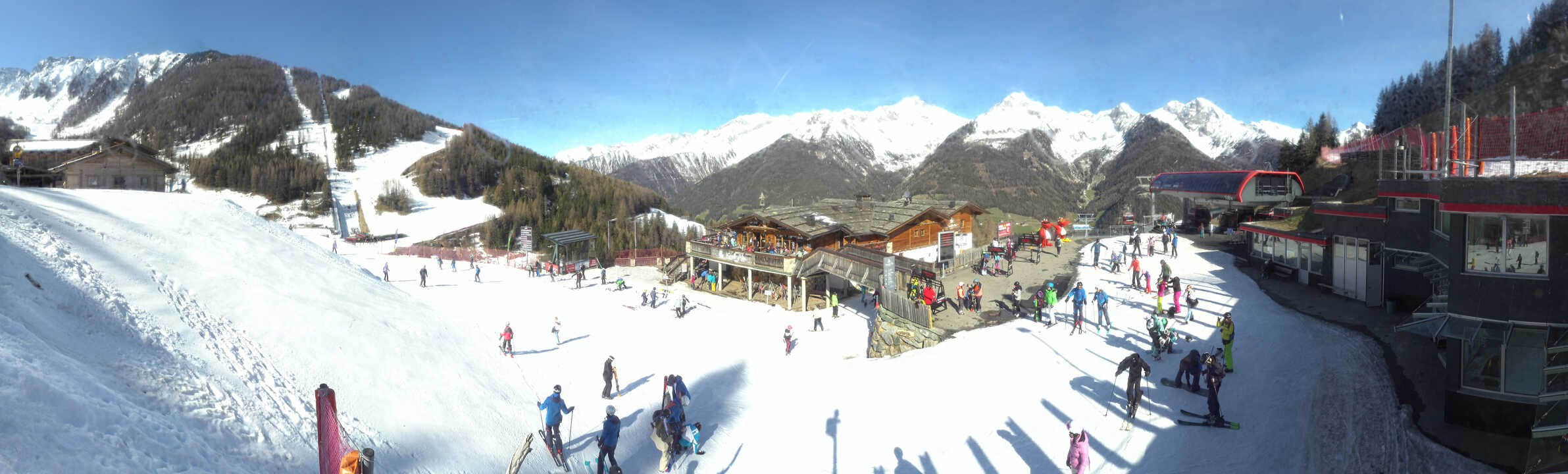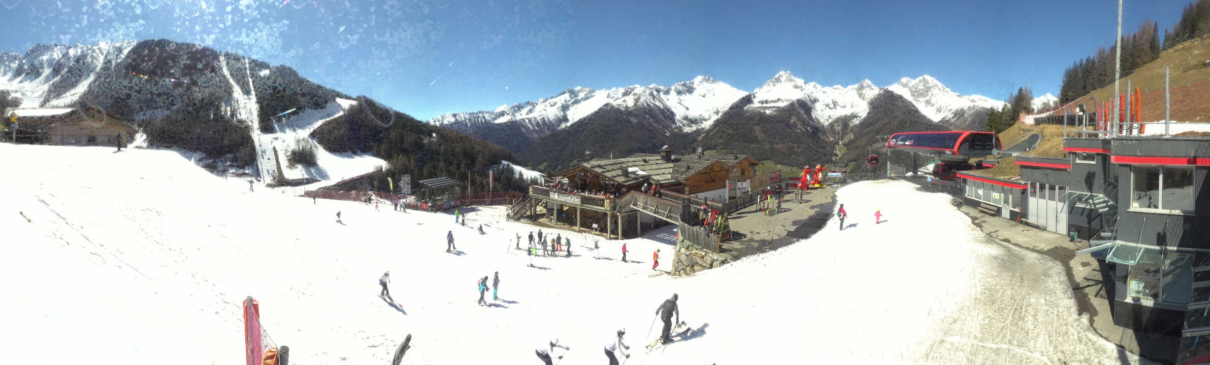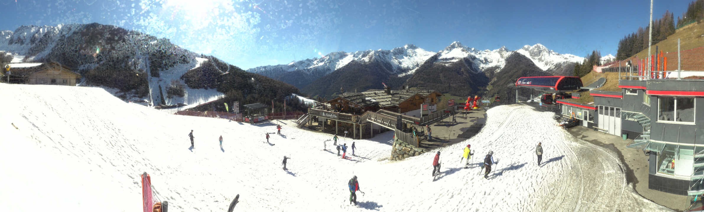 The webcam faces mountain restaurant Kristallalm at 1.600 m above sea level. It is located next to top station Klausberg in the south tyrolean ski resort of the same name. A DJ entertains skiers at the sun terrace and provides good Apres-Ski. Furthermore, one can enjoy delicious south tyrolean specialities.