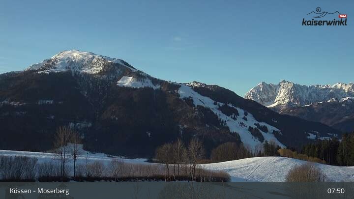 Archived webcam image showing Moserberg at Kössen Ski Resort on 28 Feb 2026 at 07:45 06:00