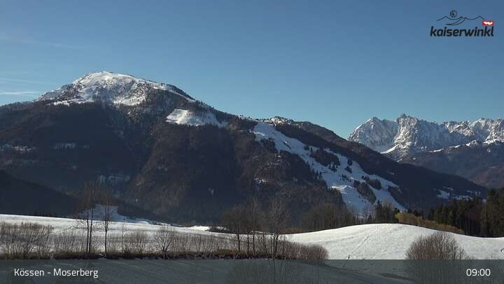Archived webcam image showing Moserberg at Kössen Ski Resort on 28 Feb 2026 at 09:45 Latest