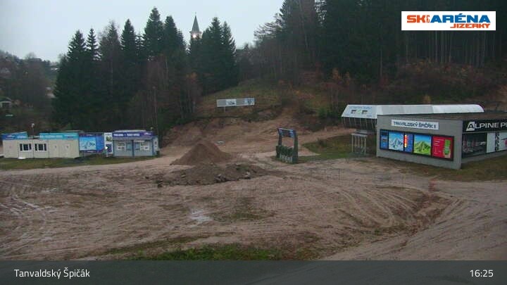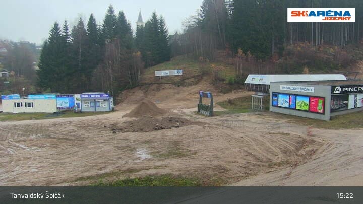 The webcam shows the view from the top station of Tanvaldský Špičák.