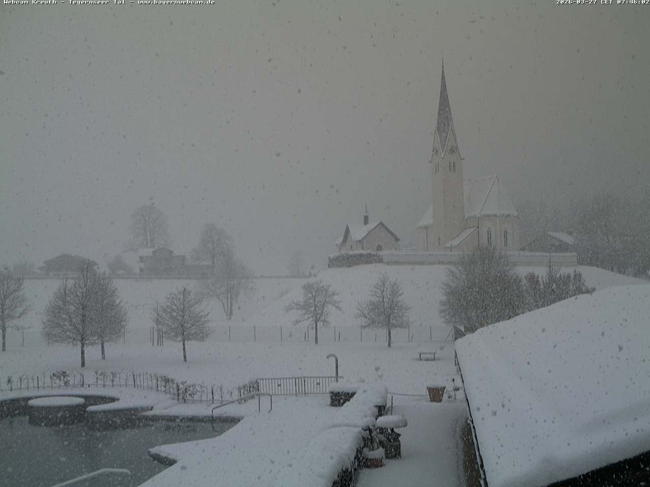 Archived webcam image showing Kreuth - Church St. Leonhard on 27 Mar 2026 at 07:12 06:00