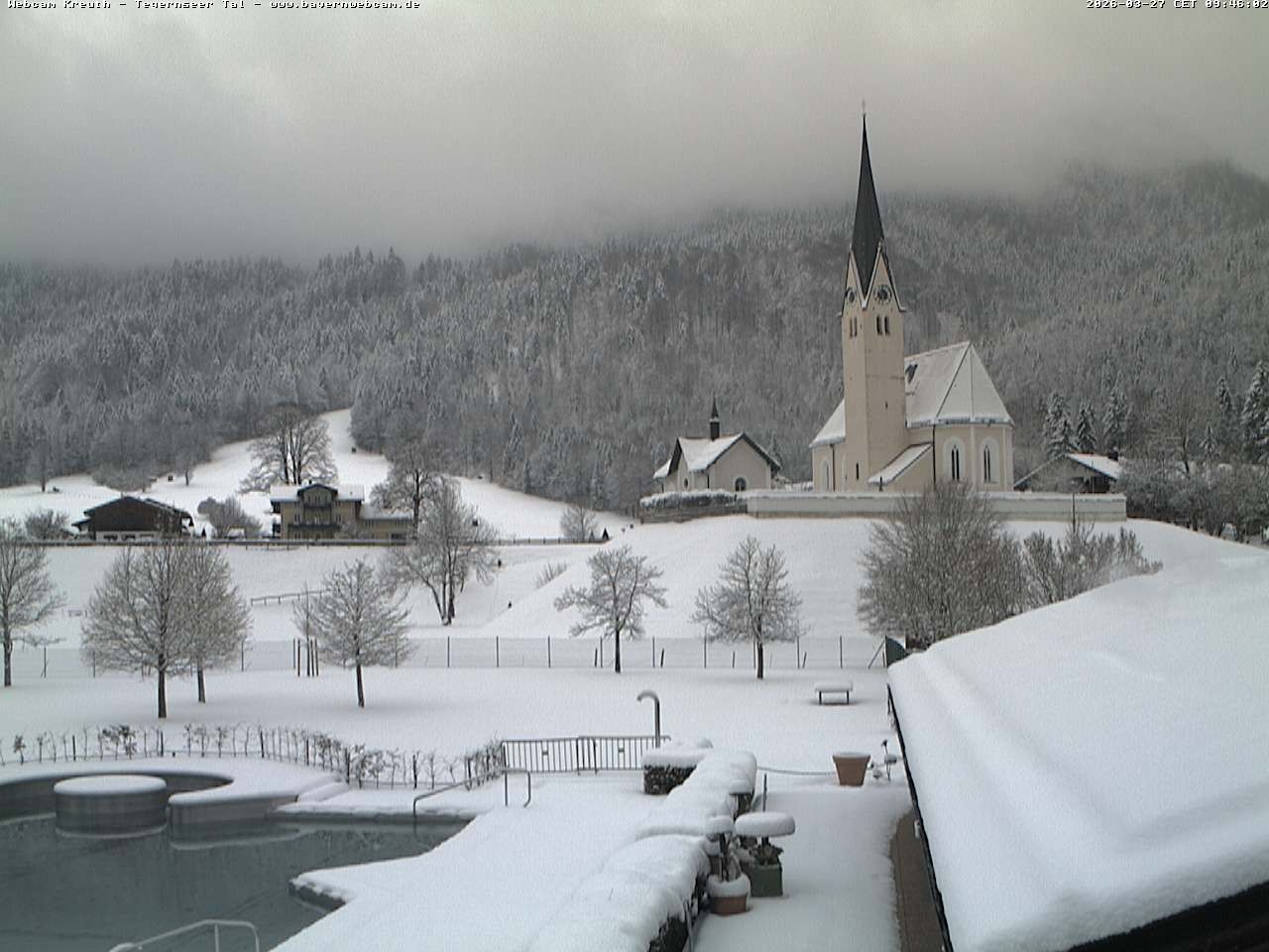 Archived webcam image showing Kreuth - Church St. Leonhard on 27 Mar 2026 at 10:12 09:00