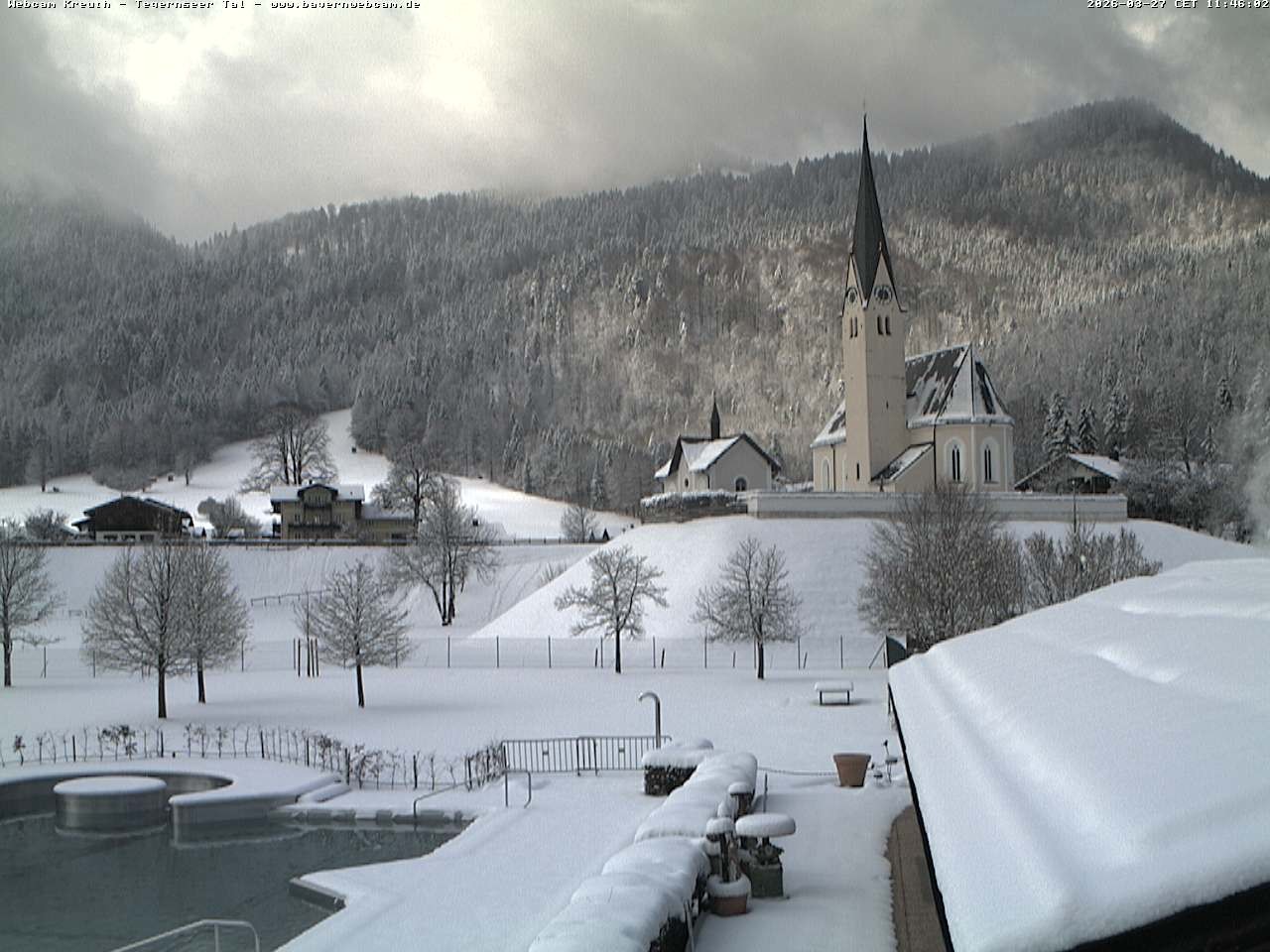 Archived webcam image showing Kreuth - Church St. Leonhard on 27 Mar 2026 at 12:12 11:00