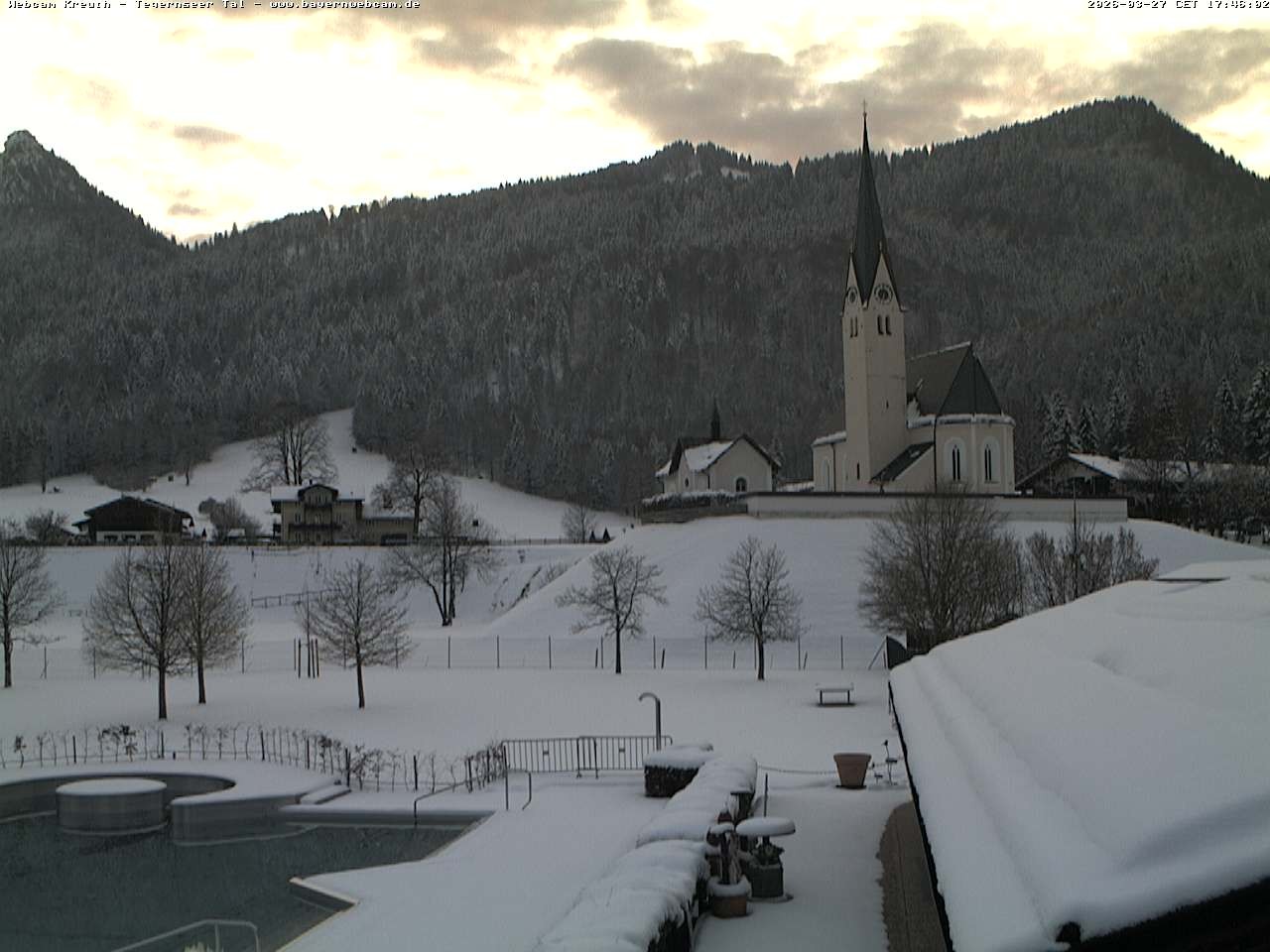 Archived webcam image showing Kreuth - Church St. Leonhard on 27 Mar 2026 at 18:12 Latest