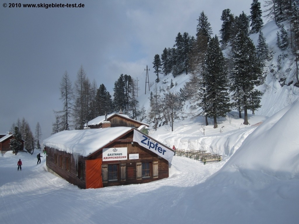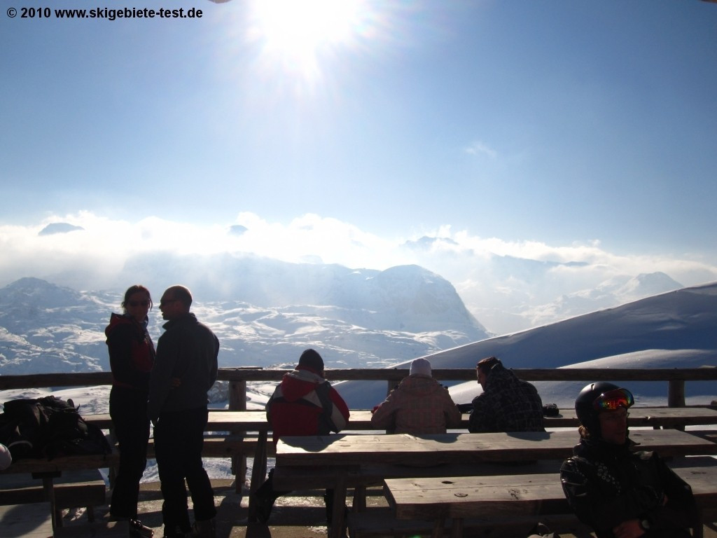 Krippenstein provides its visitors with some cosy-comfy rustic lodges and a truly breathtaking view of the Dachstein-Massiv. Especially recommendable is the “Lodge am Krippenstein“ few meters off the mountain station. Prices are fair at the rustic hut and the sunny patio is spectacular. A couple of turns downward is the Gasthaus Krippenbrunn. And for a quick snack in-between there is a little snack bar (Jausenstation) right by the entrance to the gondola. However the village Obertraun in the valley offers little in the apres-ski department. Therefore only three stars in this category.