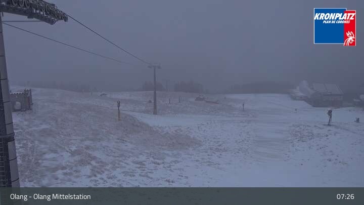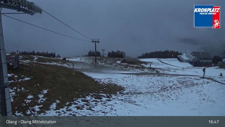 This webcam is situated at the mid station, where gondolas Olang 1° and Olang 2° meet. It looks upon the slopes of the surrounding ski resort Kronplatz.