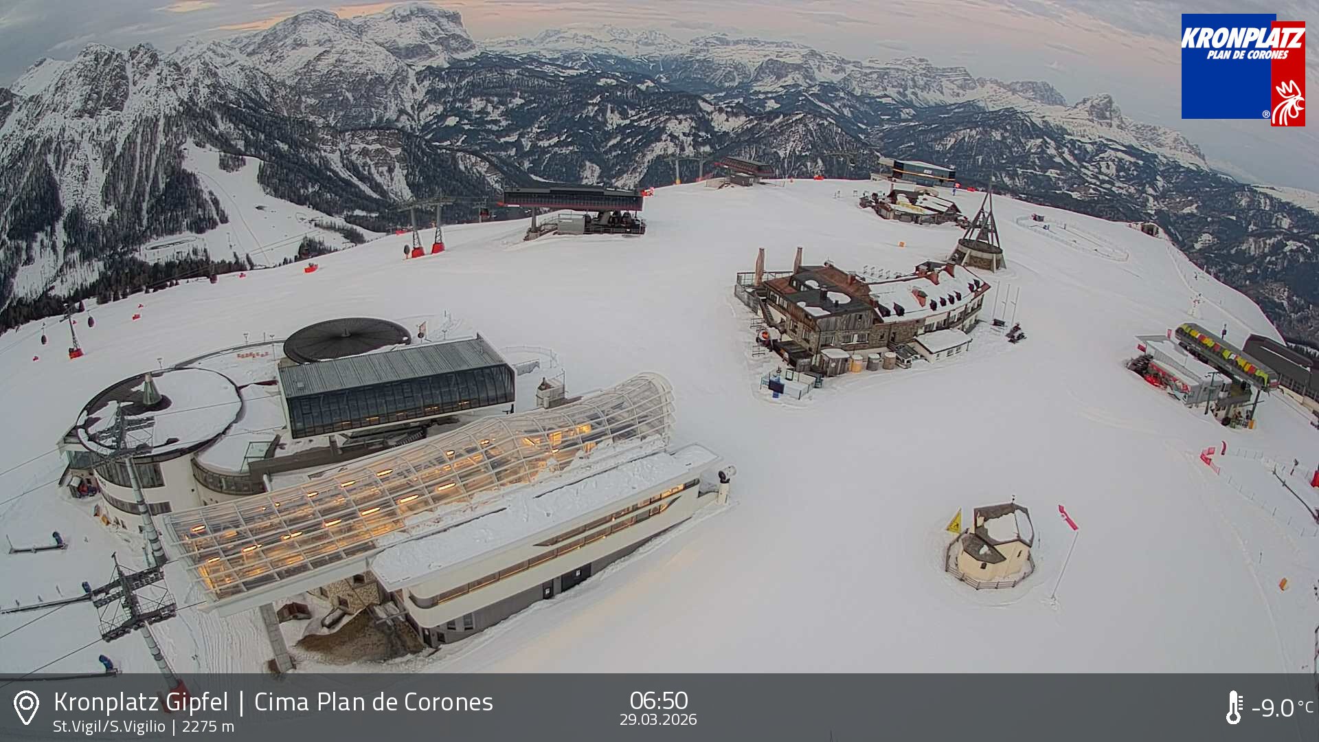 Archived webcam image showing Kronplatz - San Vigilio on 29 Mar 2026 at 06:04 05:00