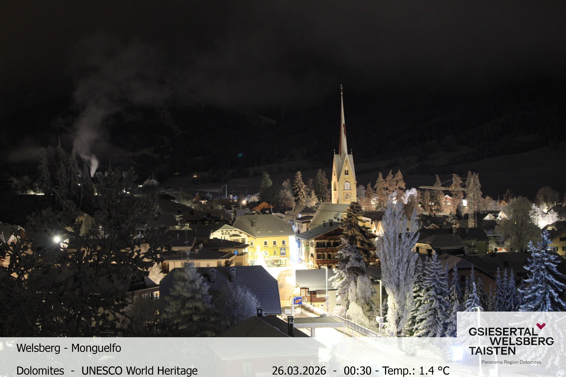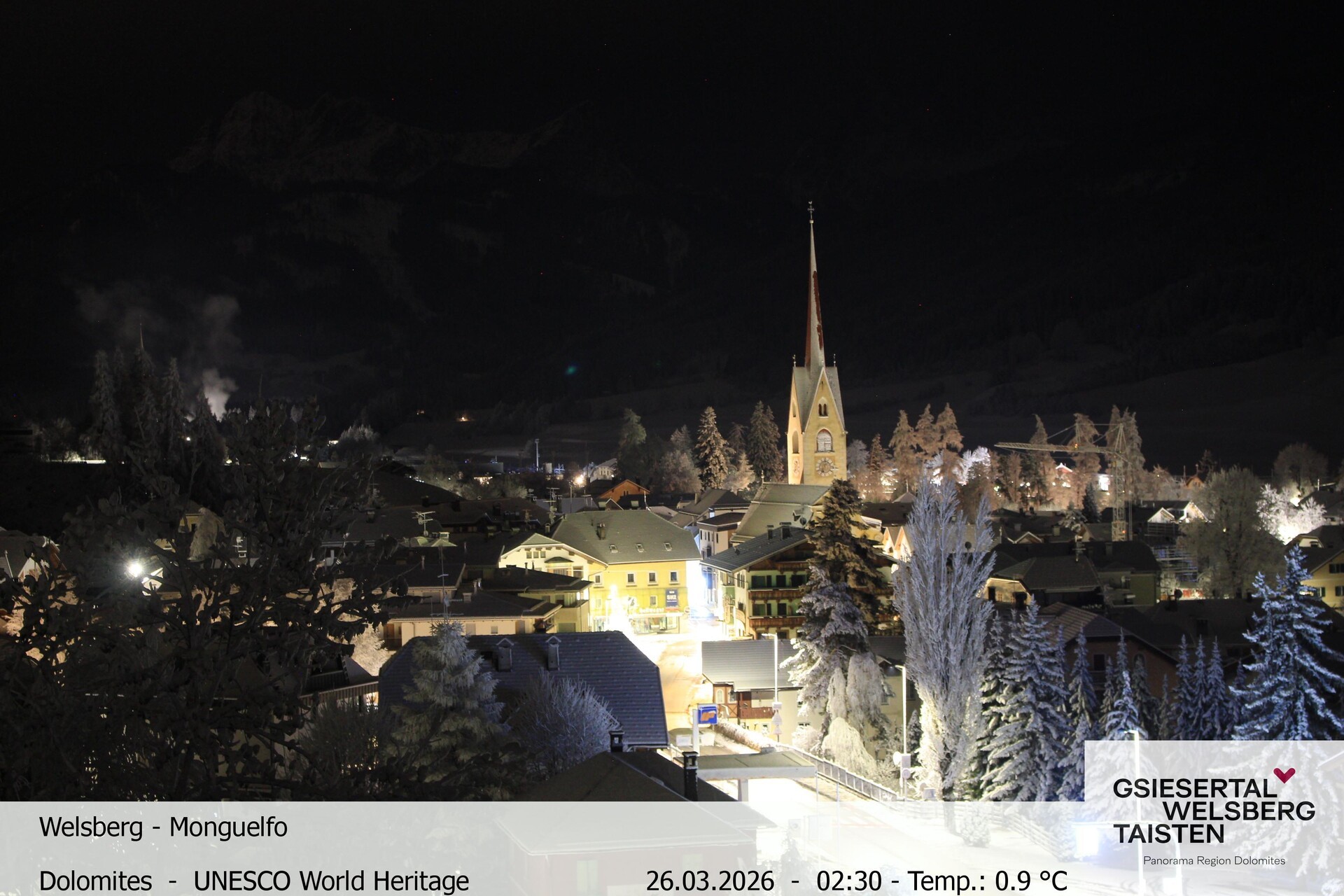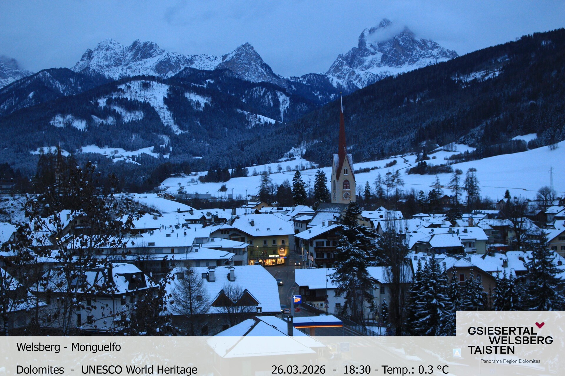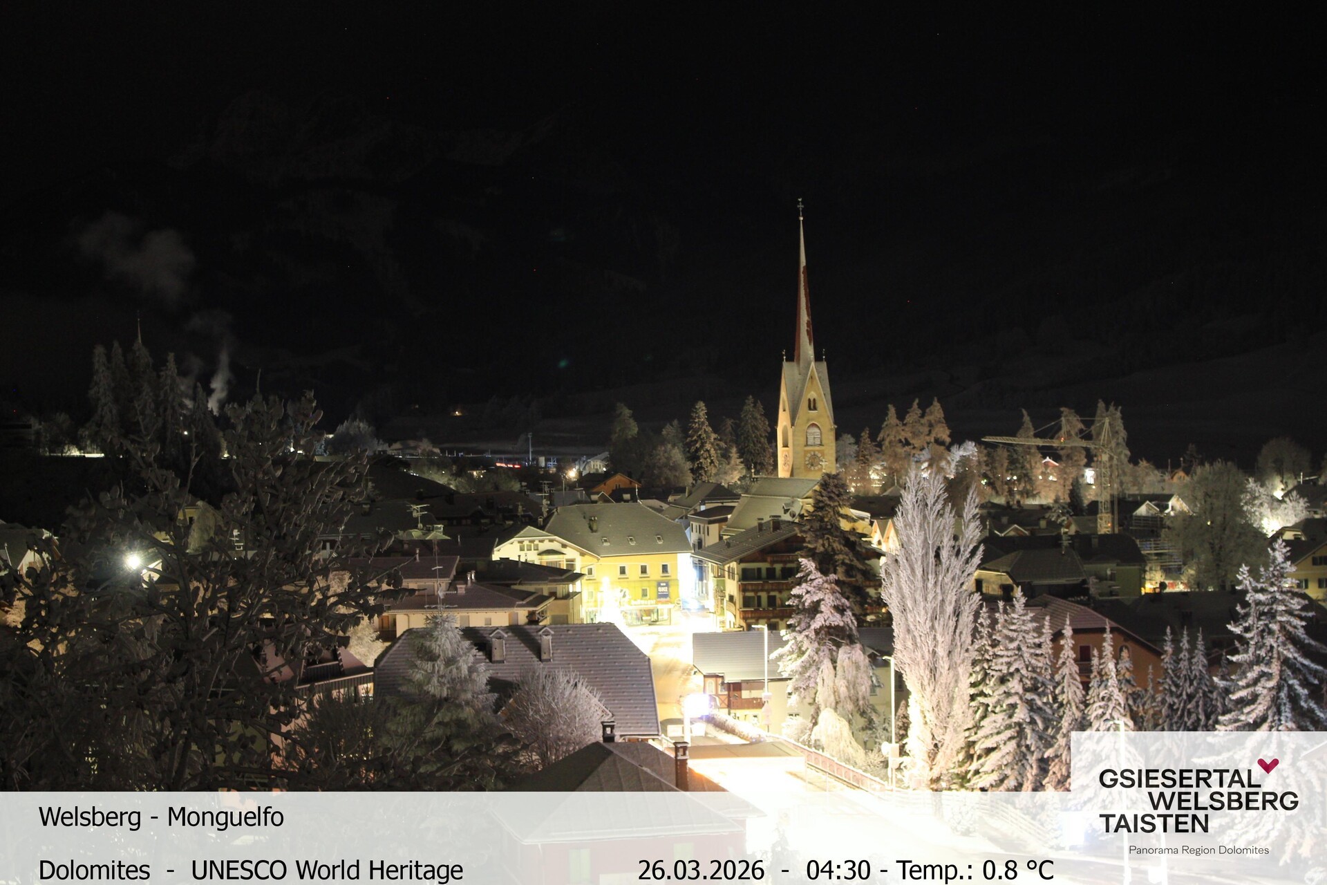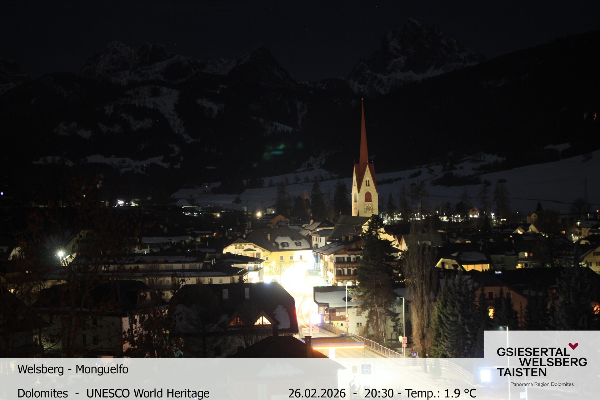 The webcam provides the look towards village Welsberg in South Tyrol, Italy. It is located at the foot of the Dolomites and is a popular holiday destination.